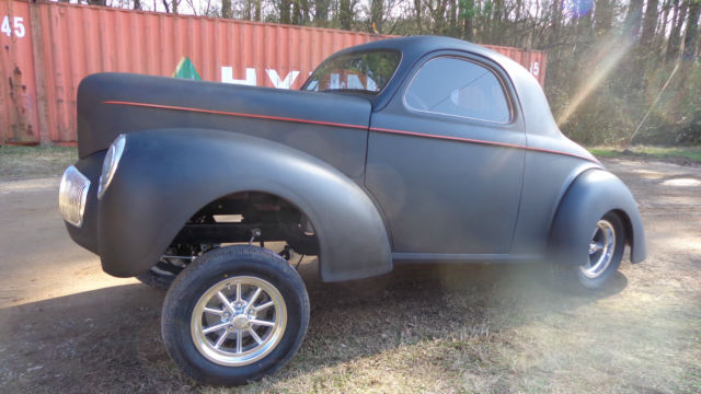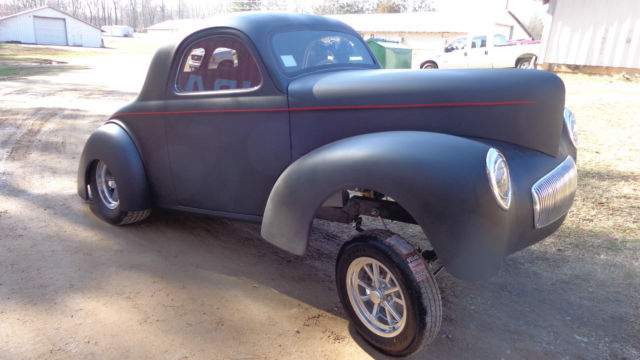 Less than 10 feedback call first. For shipping quotes call Joan 800 496 0881 car is in 30680 GA. 1941 Willy's project, new fiberglass body on new gasser tube chassis. Body has full steel structure installed, doors are hung and latched with power windows installed, trunk is hung, front and rear fenders are mounted, hood is mounted. This auction includes full glass set, old school steering column with mount and turn signal, radiator and new headlight assembly and grills, new tail lights, headliner panel, wiring harness, custom center console, door garnish moldings, dash, rear interior panel. Chassis is new tube with straight axle front suspension, chrome shocks front, Vega box, four wheel disc brakes, break booster and pedal assembly, new 9 inch Ford rear housing with new axels, chrome four bar rear suspension with panard bar and coil overs. The ride height can be adjusted a lot on the rear with the four bar and the coil overs. Wheels and tires are new 15x8 rear and drag runners front 15x 4.5 The quality of this body is very good the fit and finish of everything is very good, all parts have mounting flanges just like a real steel body. The front-rear fenders, the front grill piece, the hood all bolt on just like steel. The doors have a perfect gasket flange around them so the doors will seal up air tight with the gaskets that come with it. The trunk has a drip gutter in it so no water can leak into the trunk. The body is very heavy and strong and quite capable of withstanding a big block no problem. This is a very good start on a car I have done most all the hard work pretty much drop in a motor, interior and you driving. May consider a trade straight or down, will not trade up. I will keep the wheels and take off cash if buyer wishes? Please call with questions 803 474 5094