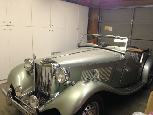 This is a vintage 1952 MG TD. You sit straight in a narrow cockpit with a large-rimmed steering wheel close to your chest. You won't get a speeding ticket for its take off from the line but its' low center of gravity and handling is remarkable. The side windows are secured behind the drivers seat. The fuel gauge does not exist, except for a light that turns on when the gas tank drops to 2.5 gallons. Having a whopping 54 horsepower, you would think it's a dog. The cast iron block and head have two valves per cylinder via pushrods and rockers. Compression ratio is 7.25:1. However it weighs 2,016 lbs and once underway is a dream to drive. This was first discovered by the Yanks over for the war, (England in WWII), who began importing them back to the U.S. Not many have survived the 63 years, as is expected. We acquired the car in July of 2012. We have taken it to car shows and for a spin at times around home. I think the only way you can understand the car is to drive it and experience the feeling. There is nothing automatic on this car. So if you are thinking of giving it to someone unfamiliar with car mechanics, in one word, don't. Maintenance is simple but some of it occurs every 500 miles. The suicide doors take some getting used to, but help with getting into and out of the sports car. This was the best selling model of all the "T" series, and rightfully so as the handling, good looks, and comfort options were the best. This was the first model with steel wheels instead of wire wheels. The maintenance on the wire wheels was excessive so the factory went with solid steel wheels. You can still get wire wheels, should you so desire along with many other options. Some original parts are still available and there is a myriad of aftermarket add-ons available. An example of that is the original factory fuel pump from England that we got when ours died.