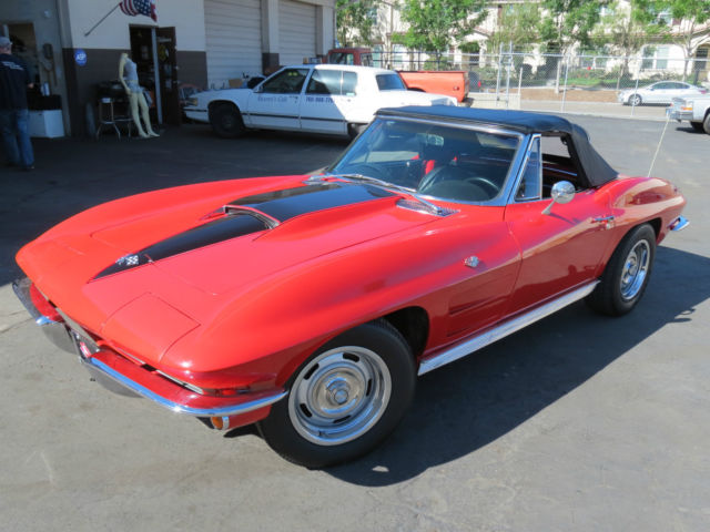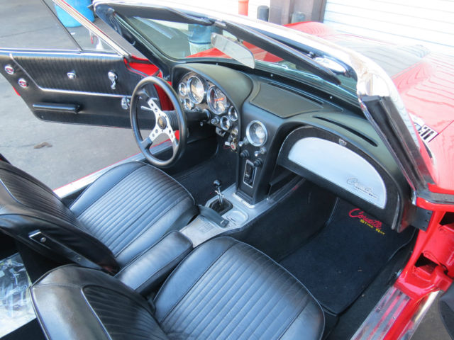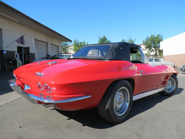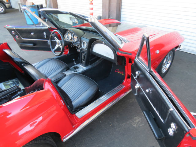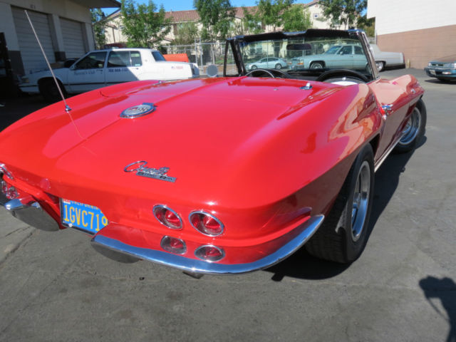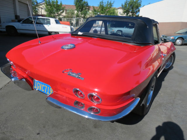 _______ OVERVIEW This is a beautiful, head turning â63 Corvette Roadster. It has been upgraded with many new parts over the last year. It has performance as well as trim upgrades with the highest quality parts available. A Matching Hard Top is Included with this Corvette. All the major systems have been gone through. It has a rebuilt 350 - 300-horsepower engine, four-speed, no air conditioning. The following is a list of the major work completed: EXTERIOR/BODY Bumpers chrome is in excellent condition on all chromed parts. All badges replace or repaired to look like new. Polished stainless exterior trim. All door handles, hood grilles and light bezels polished or replaced to look great. All door seals, weather stripping and window seals replaced with new parts. ENGINE Chevrolet 350 V8, rebuilt with the following internal upgrades: New pistons, rings and crank shaft bearings. Heads: Original rebuilt with a complete valve job. Stock hydraulic lifter camshaft. Induction: Edelbrock aluminum high rise intake and Holley four barrel carburetor and air cleaner. Exhaust: individual tube headers for both power and economy. New three core radiator, new belts, new hoses, new water pump. TRANSMISSION Borg Warner T-10 four-speed manual, completely disassembled and rebuilt, polished-aluminum bell-housing. New clutch, pressure plate and resurfaced flywheel DIFFERENTIAL Original Corvette with independent rear suspension. BRAKES AND SUSPENSION The brakes are rebuilt both front and rear. Entire suspension is authentic Corvette and in very good condition. WHEELS/TIRES BF Goodrich tires on factory 15-inch Chevrolet Rally Wheels with center caps and beauty rings. INTERIOR A combination of new a after market parts: leather seats, original door panels, upgraded carpets, new sun visors, mirror assembly and some new hardware. Original gauge cluster and factory dash. Seat frames and repainted.Call me with any questions at 760-481-8710 Let's make a deal and I will shut down this listing. Thanks, talk soon, Jack. With a $2000 deposit I can story this car for you for a month while you arrange for shipping or for your flight to San Diego to drive it home.