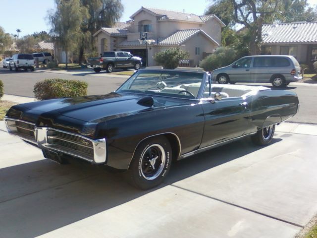 1967 Pontiac Grand Prix Convertible. This is a rare car, it runs and drives great, and gets a lot of compliments whenever I take it out. Professionally appraised for $22,000.00 in 2012, and will continue to increase in value. The 1967 model year was significant for the Grand Prix, for a variety of reasons. The Grand Prix got a completely new look from the belt-line down, and, for the first and only time, a production convertible was offered. Only 5,856 convertibles were produced out of a total of 42,981 Grand Prixâs for 1967, and Pontiac would never offer a convertible Grand Prix again. This is not a completely restored car. It does have new paint, some upholstery, carpet, most suspension components, brakes, and more. Rebuilt engine and transmission with under 2,500 miles on rebuild, and suspension. The body work, paint, carpet and some upholstery has been done in Mexico, but the drivers seat needs to be rebuilt as the springs are shot.. The rear bumper has been re-chromed.The under carriage is original, there are still a couple rust holes that I have not delt with yet, one under the passenger seat behind the driver, and a couple up in the inner fender wells, none of which are visible. There is a newly restored speedo/gauge panel in it, but the fuel sending unit needs to be replaced. The top is in ok condition, I do have a new pump, lines, and new struts for the top, but have not installed them. All the rubber seals need replacing as they are all original. The interior trim and chrome need attention. The original 14" wheels were replaced with 15" Pontiac Rally wheels.â More photos can be seen at the link below, including some photos of the body work & paint.... http://ragtymeyuma.yolasite.com/ Please contact me for more information. ragtyme1@msn.com This car is for sale locally and I reserve the right to end this auction at any time.