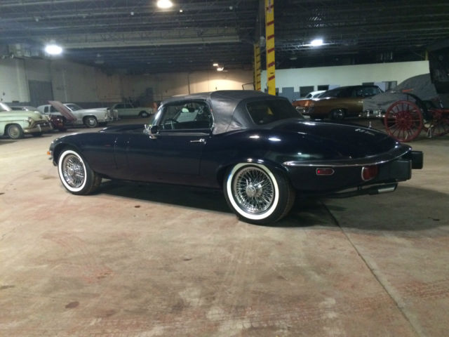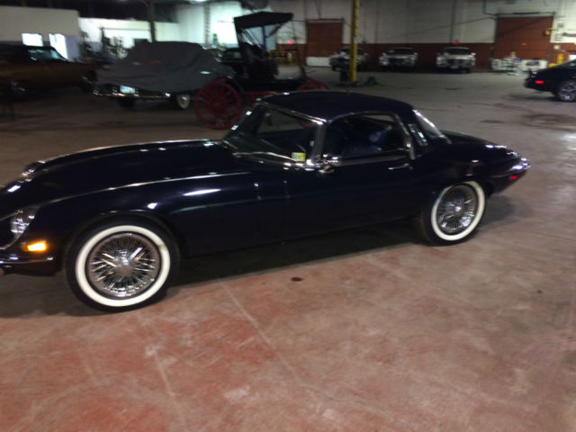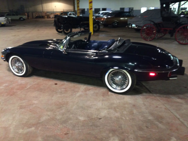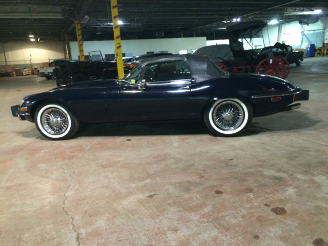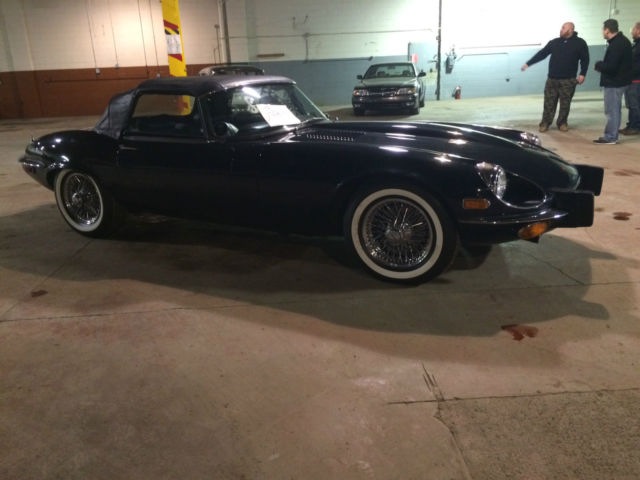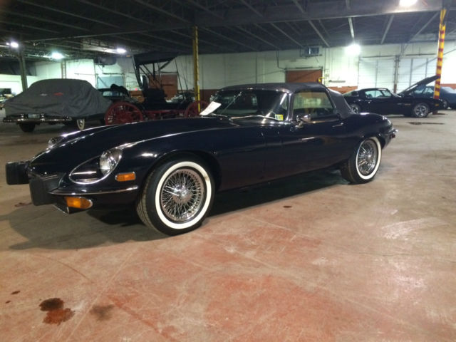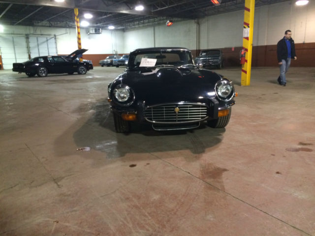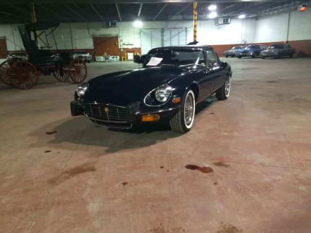 On offer is a 1974 Jaguar XKE the car is Navy Blue over Blue leather. It has just 21,309 original miles and is currently part of a private collection in Dearborn, MI where it has spent most of its life. The car has no rust and both paint and interior are in great original condition. If you are looking for a late model XKE that is priced to move look no further. The value on these cars have been skyrocketing over the last few years and would make a great investment oppurtunity as well. Winfred Weldon had over 127 Classic Cars and we are down to the last few of his collection. Prepurchase inspections are welcomed and we can be made available at any time to show the vehicle. Sorry for the poor lighting its all we could offer as its in a heated warehouse in storage. Car comes with both soft and hard tops as pictured. Vehicle has 4 brand new whitewall'd tires that have 0 miles on them. Car will also come with a brand new battery as well. Call Blake Weldon with any and all questions 734-751-0978. Vehicle will be subject to a $200 documentation fee.