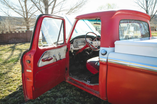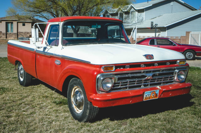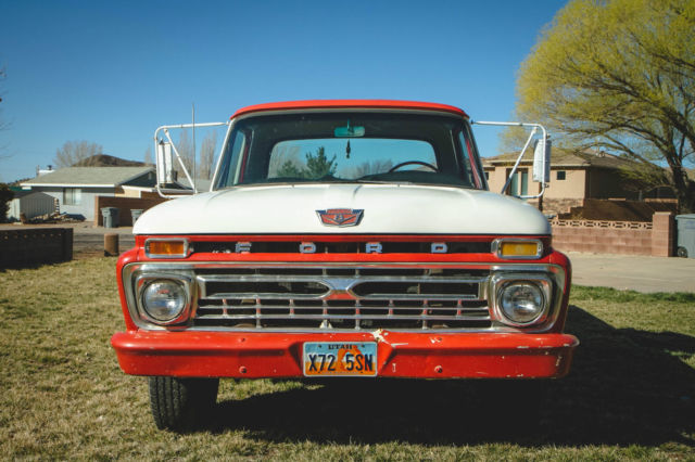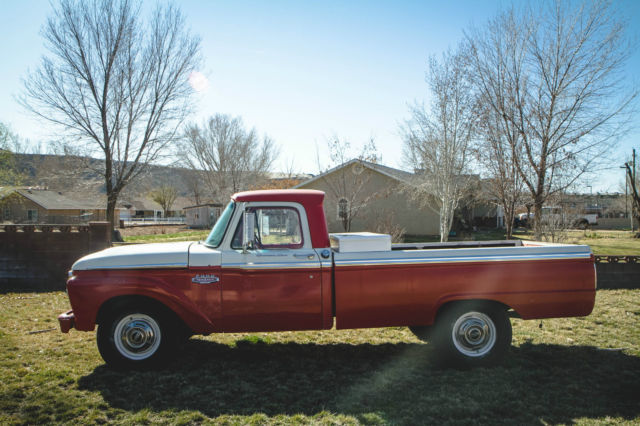 For your consideration is this very cool looking 66 F-250. The truck runs and drives however the engine does smoke blue a bit. I bought the truck from a customer with plans of making it my daily driver. As they sometimes do, plans change and now it's time to pass on the fun to someone else. I replaced the cylinder heads on this truck in 2005 for the customer that I bought the truck from and I don't believe that it has been driven more than a couple thousand miles since then. When the heads were done, they had hardened valve seats installed, new valve guides, valves etc. I planned to overhaul the rest of the engine after I bought the truck but never got around to it. I replaced the fuel pump and the distributor due to wear. Selling at a low price just to get what I have in it and give someone else an opportunity at having a cool old truck at a reasonable price. Who knew that three kids and my wife wouldn't fit comfortably in this truck while towing the boat to the lake? Oh well. Please look closely at the pictures and ask any questions you may have before bidding. The tool box that is shown in the pictures has been removed and is not included with the sale. Thanks and good luck!