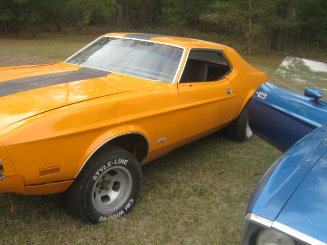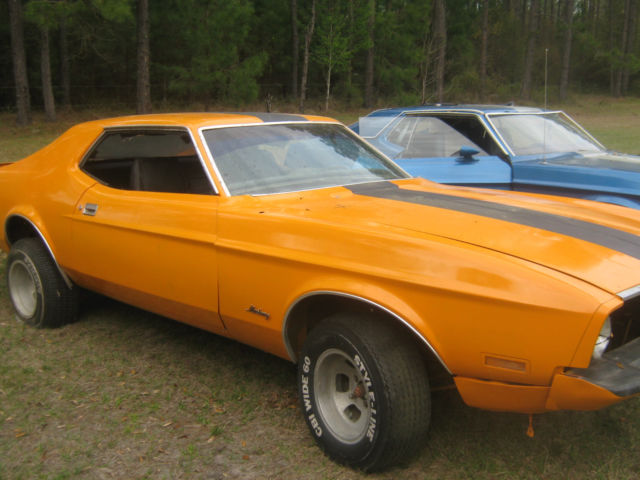 For sale today are 2 great cars. Buy 1 or both. Originally going to use as a racer these cars are in good shape and ready to move on to next owner.. $2995 for the Grande ... $2495 for the Coupe or $4995 or best offer for BOTH CARS Blue car is the 1971 Grande . It has -original body panels -Wood grain door panels -factory a/c -original matching number engine/transmission -complete interior -all glass (crack in front windshield) -vinyl top (original one removed). See how nice the roof is without new top -rolls/steers just fine -grande steering wheel to replace current non-matching wheel Orange car is the 1973 Coupe -original body panels -original seats -console -rolls and steers Some isolated areas on the lower body need work, but nothing needs replacing. Doors are good. The Grande has rust in the floors but a solid trunk. The Orange car has good floors and some trunk bottom rust, but NOT in the trunk drops, .We will gladly work with your inspector. $500 paypal deposit due at auction end with balance due in 3 days. No warranties expressed or implied. All payments non-refundable. If you need more time please let us know BEFORE the auction ends. If you need the car(s) shipped let us know we can help getting you the LOWEST possible price for shipping domestic or overseas. We have contacts with Central Dispatch and you will be charged NO/ZERO dispatcher fee, only the actual cost the shipper charges. We can ship to Europe and have contacts for shipping overseas at the lowest possible rates. 1971 Ford Mustang Grande 2 Door Hardtop Research another classic car Values Special Notes Values Values Original MSRP Low Retail Average Retail High Retail Base Price $3,212 $4,300 $14,200 $20,800 Options: (change) 302/210 HP V8 Engine 10% 10% 10% Air Conditioning $850 $1,500 $2,200 TOTAL PRICE: $3,212 $5,580 $17,120 $25,080