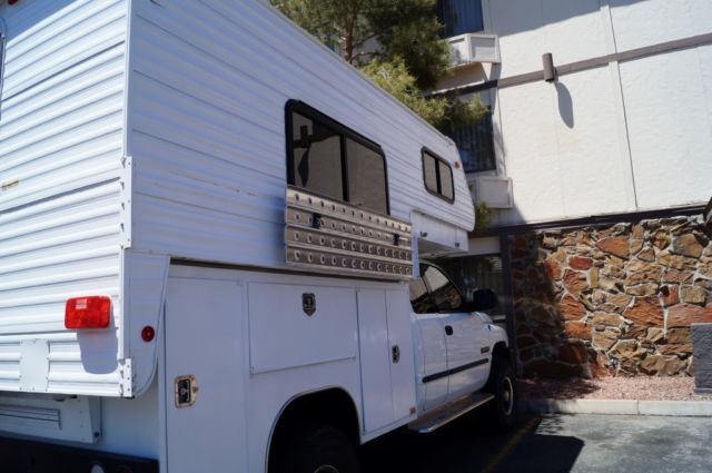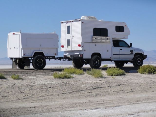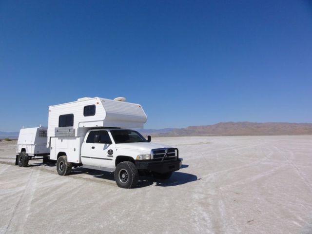 THIS IS THE LAST PRICE! BUT: If you decide to buy the truck immediately (without having me flying to US to arrange the sale), I can sell this truck for $ 12,500 because of saving the costs for the flight - please send me a message on eBay if you are interested! FOR SALE: Dodge Camper located in Las Vegas, Nevada IMPORTANT   The truck is located in a vehicle storage facility in Las Vegas, Nevada at the moment.   We are living in Austria, Europe at the moment so there is no possibility to see this truck at the moment.   I can send you proof of ownership if you want.      If you are interested or have any questions, please send me a message or drop me a line at dodge@stichl.at THE TRUCK   1998 Dodge RAM 2500 4x4   5.9L Cummins turbo diesel 6BT 215hp (specs)   P7100 Inline fuel pump all mechanical no computers   Magnaflow full stainless turbo back exhaust system   47RH 4-way hydraulic controlled automatic transmission   Dana 60 front axle, coil springs, 4.56 gears   Dana 70 rear axle, leaf springs, 4.56 gears, Detroit locker   Rancho RS9000 nine way adjustable shocks   Timbren ride control system on rear axle   Harbor body utility service bed   Ranch Hand steel platform front bumper   315/75R16 BFG Allterrains (601 revs/mi)   16x8 American Racing 767 black steel wheels   Dual Optima red top batteries   35 gallon / 132.5 liter fuel tank THE TRAILER   M101A2 Military trailer   Knapheide Steel utility shell   Flip out side doors and rear doors with struts   3500lb conventional trailer axle, 8 lug pattern   315/75R16 Goodyear Wrangler MTRs   16x8 US Steel wheels THE CAMPER   8.5' hardside truck camper, modified to fit in utility bed   110v AC airconditioning unit on roof   Propane heater, propane 3-way stove   Propane detection sensor and smoke alert   Domestic multi-purpose fridge (AC/DC/propane)   110Ah domestic battery (chargeable by AC mains or engine when driving)   NEW and very comfortable mattress NOTES   There is no real bathroom - it has been removed by the previous owner to fit the truck camper onto the truck's utility bed.   Some people asked me about the gas mileage. I believe it was something about 15mpg, but we are used to european gas prices and gas is very cheap in the US - we did not care so much about that. sorry!   The place where the portable toilet is located can be also used for storage purposes.   Length of the truck is about 25ft, length of the trailer is about 10ft, height is about 12ft.   There is one additional spare wheel located in the trailer.   We used the trailer for storage purposes only.    There is a lot of dishes, towels, tools, a vacuum cleaner and other useful stuff inside the truck which you can keep of couse. ADDITIONAL PICTURES   also see website http://dodge.stichl.at/    http://dodge.stichl.at/dodge_pics.pdf   http://dodge.stichl.at/dodge_pics_2.pdf