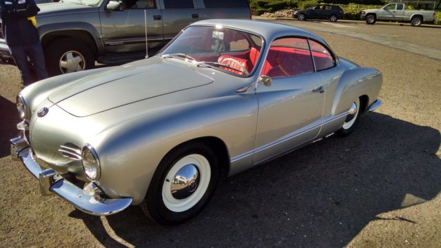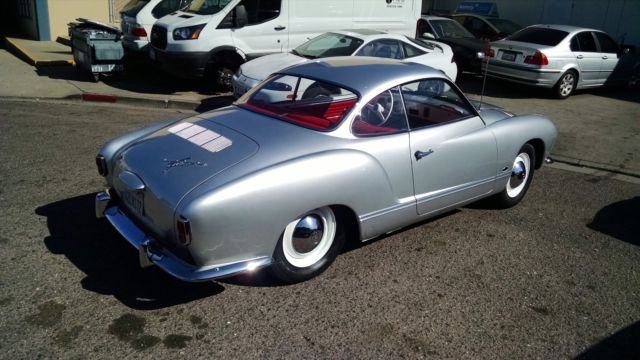For sale is a 1959 Volkswagen Karmann Ghia lowlight that underwent a total restoration. As you can probably tell by now, lowlights have been really hard to find lately. I have owned this one for almost 10 years now and have personally supervised all the restoration work. The body was totally stripped, prepped ( along with some metal work and very little bondo ) and repainted in silver. The original color was Lizard green. The vehicle we started with was complete and most importantly uncut. The floors were patched and undercoated on the top and the bottom. The engine is 1300 cc ( not sure if it is the original ). My understanding when I bought the vehicle was that the only change was a conversion from 6 to 12 volt but then again in the interest of full disclosure I am not 100% sure this is the original engine. Glass is used ( all German with the sekurit logo ) so it has a few scratches here and there. All metal pieces were rechromed. Brand new rewiring and battery. Fuel tank was taken out and cleaned. Steering wheel recasted by Koch's. Brand-new vinyl interior and headliner down to the pull strap on the driver side ( the way they came off the factory ) and a rechromed rearview mirror ( almost impossible to find ). No radio ( you can go classic or modern ). The antenna is brand new and not hooked to anything. All receipts available. If you are looking for a vehicle that will last you for many years this is it. I understand I will not recoup all the money I have spent on this vehicle therefore the reserve price is not outrageous by any means ( please no e-mails asking how much it is,thanks ). HAPPY BIDDING. On Feb-24-15 at 08:17:27 PST, seller added the following information: A FEW UPDATES : NEW BRAKE DRUMS, SHOES AND SHOCKS JUST INSTALLED. ALSO INSULATION MATERIAL ( DYNAMAT ) WAS INSTALLED PRIOR TO CARPET INSTALLATION. INTERIOR PROFESSIONALLY DONE ( NOT A KIT ). VEHICLE COMES WITH A BRAND NEW CAR COVER ( CLEANED ONLY ONCE ).