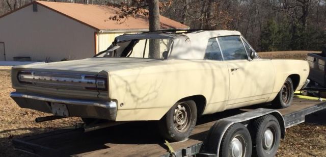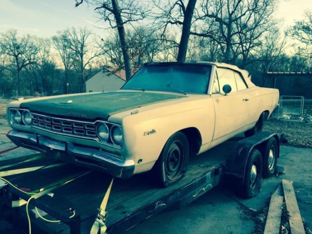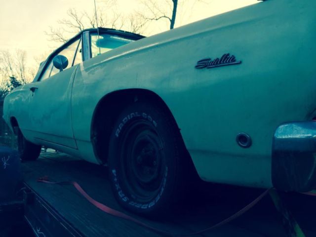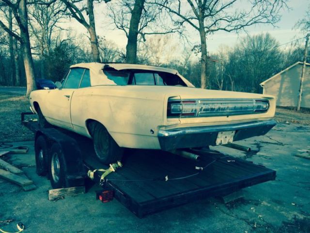 1968 Sport Satellite convertible in need of a complete restoration. Originally 318, console automatic, red interior, power top, with what looks to be a white exterior and white top. Transmission, driveshaft, and 22" radiator present. No fender tag or build sheet present. 318 is gone. Has 8 3/4 with unknown gears in it. Has all of the convertible parts present (chrome, frame, rear seat, rear door panels). Radio bezel was cut for different radio. Not original steering wheel but I have a correct red one in the mail. Front seats are from a 1967 C-Body. Grill is from a satellite/road runner. Top needs to be replaced completely. Front bumper is a 1969. Rust repair needed in both of the rear frame rails. Lower extremities of the body has bubbling as seen in pictures. Floor pans in the car need repaired/replaced. The frame rail under the driver footwell needs to have metal added to it. Some rust near the hood hinges. Trunk lid is rusted on the inside lip, needs to be replaced. If you "BUY IT NOW" will get you a 440 block that is unstuck needing to be rebuilt most likely, a full set of rear frame rails(the last picture), and a 1968-1969 Dana 60 out of a B-Body that has 4.10 gears in it (no brake drums). The entire frame rail included doesn't need to be replaced, but it is complete in case you want to replace the whole rear frame rails. See pictures or ask for more if you have any other questions before bidding. I have an album with a bunch more pictures on it. Would possibly do some trading. 1963-1965 or 1968-1971 B-body. E-body. I have sold 2 cars on here (12,500 and 5,500) and bought one (30K) and still have perfect feedback. The pictures should tell you everything, if not just message me and I can go over the car better with you before bidding. A Non-refundable $500 deposit is due within 48 hours of end of auction. Remainder to be paid in cash or through a wire transfer with in 14 days after auction ends. Cash will be counted and verified by the bank if paid in cash and then car and title will be handed over to the new owner. Car must be removed 15 days after the auction ends. A $25/week storage fee will be added for each week after holding the car for 15 days unless we come to an agreement BEFORE you bid. I will help load onto trailer to ship to you. Car is sold as/is, where/is. Car is listed locally, ad may end early at anytime.