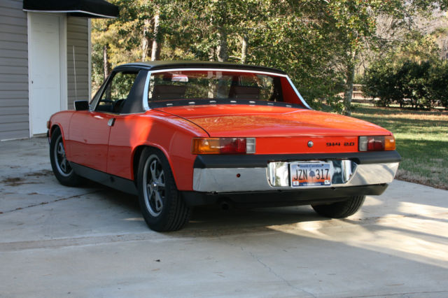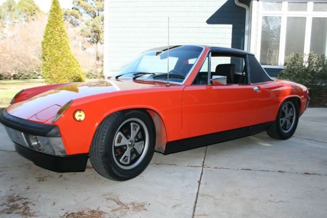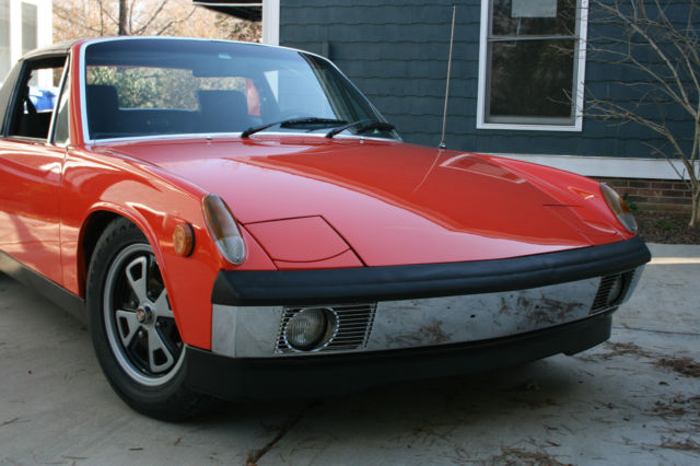 My 1974 Porsche 914 is for sale. It came originally from CA and lived it's life out west, so it's a solid car. The longs and hell hole are solid. When I got the car, it had an aftermarket spoiler on the rear trunk, which allowed water to leak into the trunk. I have repaired the rusted part of the trunk floor with a new panel, removed the spoiler, replaced the rear trunk lid with a solid one, and had the entire car repainted in it's original Phoenix Red. This color is actually a deep orange and very nice. I put some OE fuchs wheels on the car with new tires. All the electrical gremlins have been sorted, so all the lights work and all the gauges work. The headlights have been replaced with halogen bulbs. On the interior, I have put in an aftermarket set of sport seats with Italian leather, new door panels, replaced the cracked dash and relined the targa top. The car drives and shifts well. On the engine, I have completely tuned it up, including valve adjustment, new distributor cap, rotor, plugs and wires and added a pertronix ignition. The car came to me with a dealer-added air conditioning set-up. It comes on and the compressor works, but it's not charged. I have replaced the bumpers with an earlier version without the huge, ugly over-riders. They have been re-chromed and are perfect. Priced fairly. These are really rising. Everything is great on this car. Open to inspections. Any questions, please ask. I have a Flickr album with 80 pics. Ebay won't allow me to post the link, so let me know and I'll send it to you. Also, I have lots of spare parts and a set of factory service manuals which go with the car. Complete service records as well. Odometer reading 69, 233 miles.
