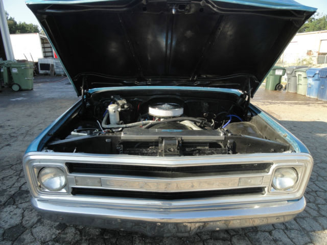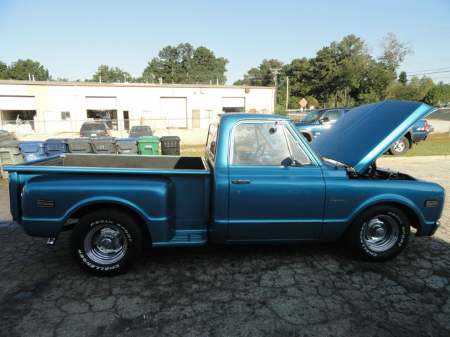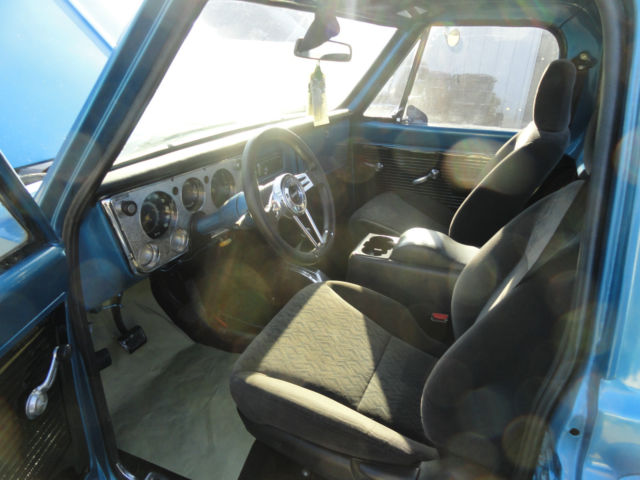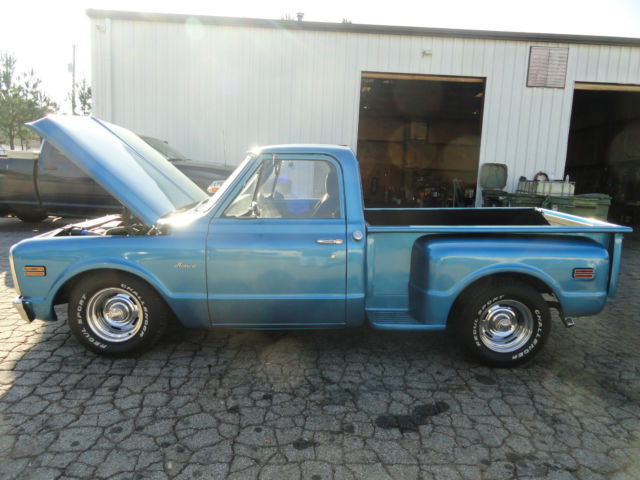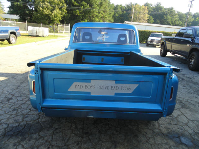 what we have here is a nice 70 chevy stepside c/10 truck it has had a recent cortez blue paint job . Body is is clean and straight with no signs of rust [10] paint is good, but not show quality [8] interior has two nice bucket seats with center console , GRANT steering wheel,has stereo but no speakers , truck was originally 3 on the tree , column shifter still remains but shift lever has been removed. it now has a Hurst ratchet shifter in the floor with automatic transmission , 350 ENGINE , double hump heads ,has a/c but needs to be hooked up . edelbrock torker intake, headers, DOUBLE hump heads with nice street cam . dual exhaust , 15 '' corvette rally wheels with new tires still has original drum brakes . I HAVE DECIDED TO SELL THIS ONE IN ORDER TO SPEND MY TIME ON A 30 YEAR OLD PROJECT OF MINE THAT IS NEAR COMPLETION. A TRUCK that is as straight as this one in this condition is hard to find you will not be disappointed in this little ''HOT ROD '' I will start the bidding @ $9,999 good luck & GOD BLESS YOU ! IF you have any questions give me a call at 404 569 2699 TIM
