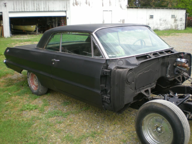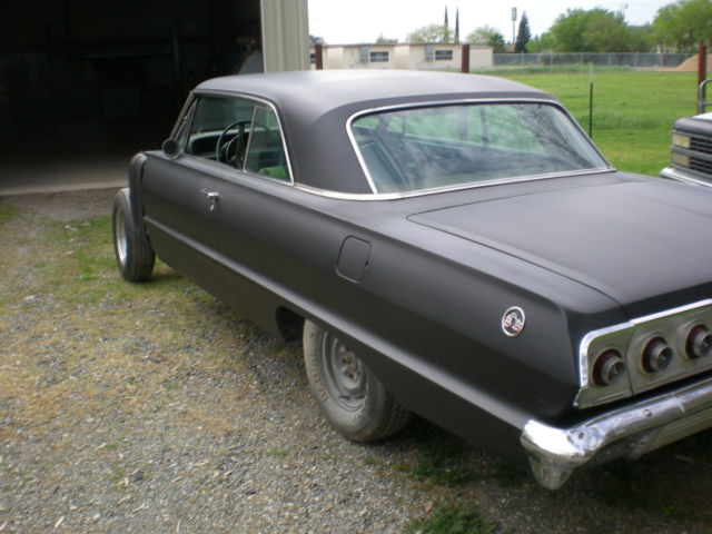 1963 Chevy Impala SS. What is new front and rear back glass, frame off with new brake lines and fuel return setup for a 409 engine., Front disc brakes and new rear brake linings and wheel cylinders. Suspension is after market Hoskins, new springs, shocks, sway bar and frame has been soda cleaned and painted. Body work for the doors and quarter panels has been completed. Trunk has a new floor pan installed. Has all new American atuo wire wiring harness installed, i,e, dash and front clip ignition and light and for a 1 wire alternator and hei ignition setup. Front and rear bumper assembly is new and brackets restored. Has clutch pedals and related hardware. Factory dash and tach 0-7000 rpm tach. Has all interior that is used and needs new interior but all hardware I have. Has a new trunk lid. I have the original hood and front fenders. I have new front fenders and new inner fenders and new hood. I have all the chrome mouldings and new side after market mouldings. I have a new hardware for assembly interior and exterior. I have all parts to assemble car except no grille. I have the head light buckets and the front aparon and lower grille and front hood springs and new battery tray and new yellow cap battery. Lots of other goodies that will go to the buyer. Contact Jack Gibbs 1-530-934-4336 or cell 1-530-228-2470 also have the top rail moulings that are new but not installed. some mouldings have been installed from the rear forward. Has P case housing but posi not installed and new axle bearings both side.