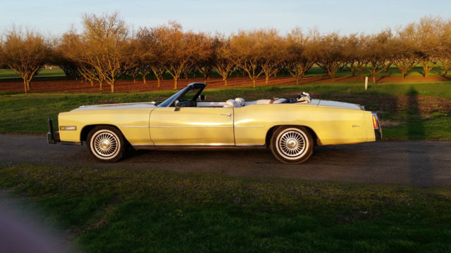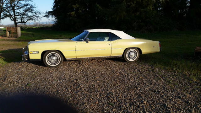 I'm selling my caddy. It has the 500 cadillac motor and is all original with nothing cut chopped or messed with. just got a new top put on it that's old gm white, rebuilt convertible motor, new cables, new scissor arms and the receipts to prove it all. Runs great and I've never had any problems with it, tons of trunk space just went and got groceries with it last weekend. Color of the car is gm 52 Bombay Yellow with black interior and white seats, definitely turns heads and makes people smile when they see it. 123,000 original miles roughly I think and it has a lot left in it. I have all new fender extensions and filler pieces that go with the car that are painted the right color. I also have a brand new hood ornament and new eldorado emblem for the side as one of the emblems is missing letters. Brand new master cylinder also I put in a new power antenna which is a temporary universal one because I needed radio until I found an original replacement, but I guess I'm not going to get that far. Paint on the car is original so it is slightly faded, but maybe if it was buffed really good the original luster could be restored or new paint. As it sits though the paint is in good shape and the body is straight as an arrow with only one minor ding you have to look down the side of the car to see. Any questions you have about the car I'd be more than happy to answer.14,000 obo, all offers considered