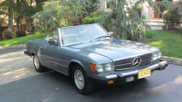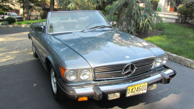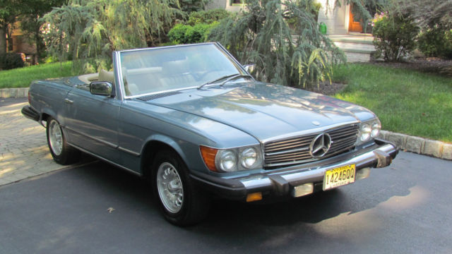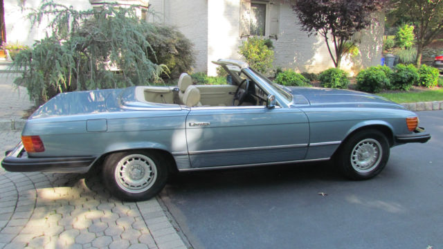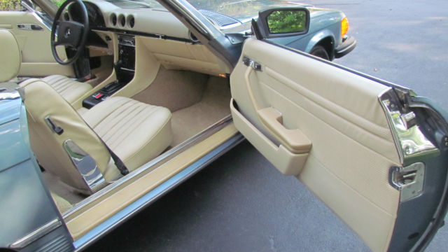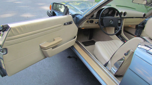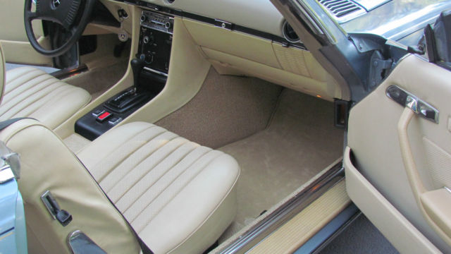 Clean, original, unmolested car: Prior to me purchasing this car two years ago, it remained in the same family for 36 years, transferring from father to son. The car has always been looked after by professional Mercedes mechanics, and has always been garaged and well cared for its entire life. The owner provided me with A-Lot of receipts; the latest was for new tires, alignment, fuel filter, recent tune-up (plugs cap/rotor and filters), and new battery. Also replaced were multiple cooling hoses, belts, injector seals, fuel distributor and gaskets. Fluids changed (brake, antifreeze, transmission). Idles smooth, accelerates without hesitation, shifting automatically with ease through every gear. The car recently underwent a professional repaint; the paint looks beautiful (deep shine and clean). There never was a speck rust or dents on the car; no signs of body damage; the exterior color is silver blue with light cream interior. The interior is in excellent shape, not a rip or stain; carpets are brand new MB originals. Interior trim is flawless. The soft top is in good condition for its age, and still looks very presentable, the rear window is clear, but does have some small sun spots. The original color matched hard top is in excellent shape. The heat and instrumentation work very well, as do all the mechanical on the car with the exception of the A/C. A brand new 143a compressor, dryer and conversion materials come with the car. It has the original Becker Mexican radio that works beautifully. The trunk is equally clean; no blemishes on the carpets or the trim, no stains or smells. Car has original owners manual, first aid kit, multiple keys and original German tool kit. Asking price is $12,900
