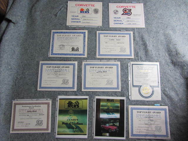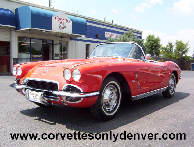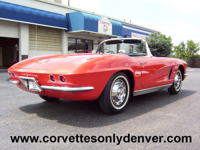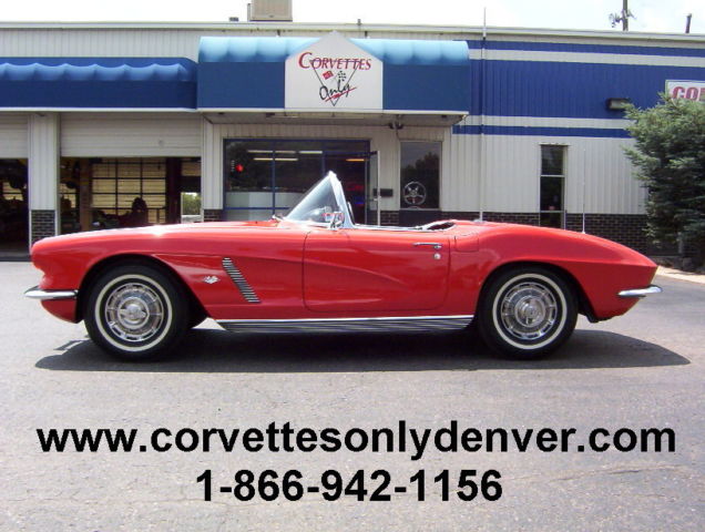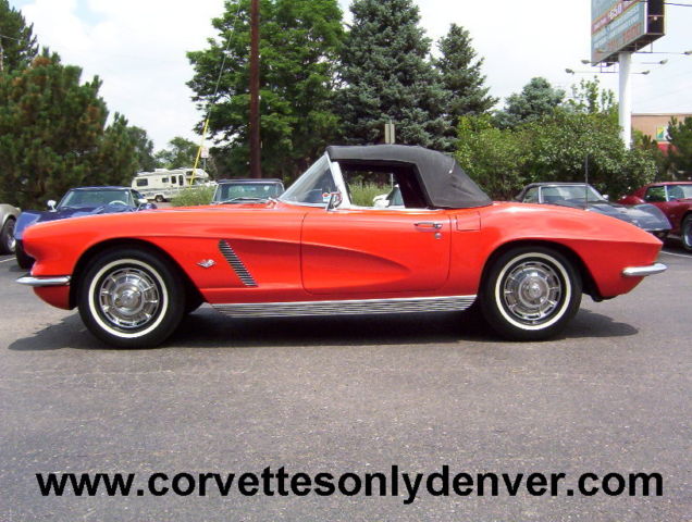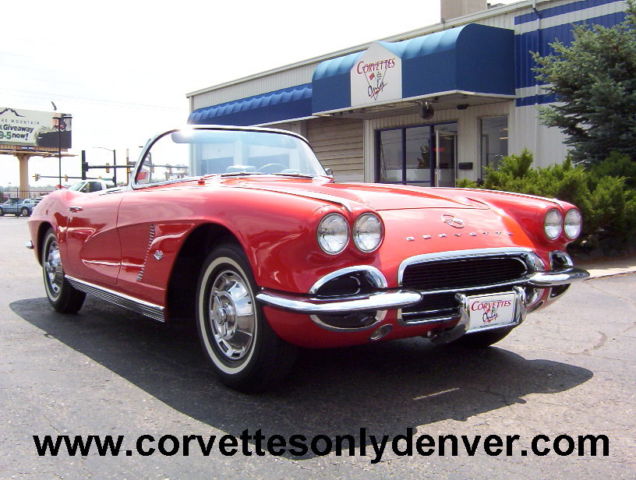 1962 Corvette Convertible, Roman Red Exterior/Black Vinyl Interior, Black Vinyl Convertible Top, 327/340H.P. Numbers Matching, 4-Speed Numbers Matching Manual Transmission. -Award Winning: -Duntov Mark Of Excellent (2000) -NCRS Performance Verification (1999) -5 NCRS Top Flight Awards (1998 Score 97.0, 1999 Score 98.3, 1999 Score 98.8, 2000 Score 98.5, 2001 Score 98.6) -Bloomington Gold Certified (2000) -Centerfold Car in Corvette Fever Magazine (June 2000) 1962 Chevrolet Corvette Convertible VIN 20867S112712 1944 Miles Since Restored Roman Red Exterior Black Vinyl Interior Black Vinyl Soft Top 327 ci 340 hp Numbers Matching Engine Casting # 3782870 Date Stamp Pad Reads F0606RE 2112712 4 Speed Manual Transmission Numbers Matching Aluminum Intake Manifold 4 bbl Carburetor Finned Aluminum Valve Covers Rear End Steel Wheels with Hub Caps 670 x 15 Whitewall Tires (BF Goodrich Silvertown 4 Ply) Sun Visors Seat Belts AM Wonderbar Signal Seeking Radio Ignition Shielding Heater Wipers Courtesy Lamp Generator Owners Manual and Owners Protection Plan Book A Frame Off Restored Car in 98 to 99 with 1944 Miles Since Nice Paint with some very minor flaws . The Black Vinyl Interior is in excellent condition and needs nothing. The Black Vinyl Soft Top is also in excellent condition. Chrome and all stainless moldings are also in perfect condition. Believed to be a 4 Owner car but cannot verify. Overall and excellent car that can be driven and enjoyed for many generations to come. ***VISIT OUR INDOOR/OUTDOOR SHOWROOM WITH 35 CORVETTES, MUSCLE CARS, BOATS & BIKES IN STOCK*** ****CORVETTES WANTED!! **** SELL, TRADE, or CONSIGN YOUR PRE-OWNED CORVETTE!! ****MUSCLE CARS WANTED!! **** Camaro, Chevelle, Nova, El Camino, GTO, Firebird, Roadrunner, Cuda, Charger, Challanger, Mustang ****SELL, TRADE or CONSIGN YOUR PRE-OWNED MUSCLE CAR!!**** ******Why To Buy or Sell to Corvettes Only****** -28 Years in Business. -A wealth of experience in the corvette business. -Full Service Dealership. -We service what we sell. We are a complete Corvette restoration shop. -Large Selection. We have the largest selection of Pre-Owned Corvettes & Muscle cars in Colorado. -Competitive Pricing. Compare our prices with everyone else and see. -Customer Service, As good as it gets. -We make the shopping experience as simple and straight forward as possible, no games. -Close association with local Corvette Clubs. -Keeps us in touch with what people want. -Open Monday-Friday 8-6 Sat. 9-4(Summer Hrs.) Monday-Friday 8-5 Sat. 9-4(Winter Hrs.) CORVETTES ONLY INC. 2300 W. HAMPDEN AVE. ENGLEWOOD, CO.80110 (303) 781-3810 http://corvettesonlydenver.com/ -Shipping Quote Available Upon Request-