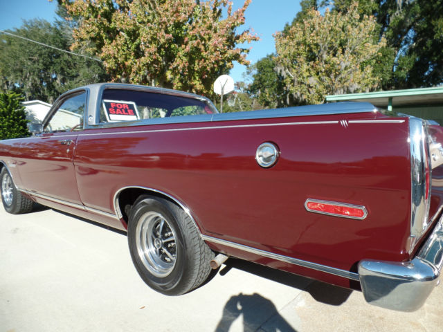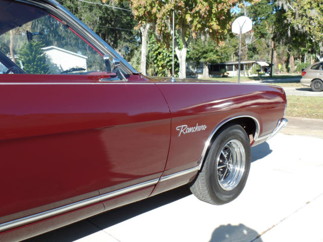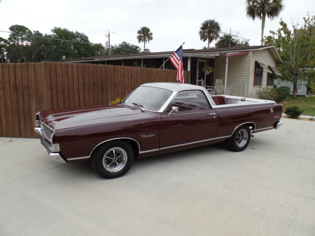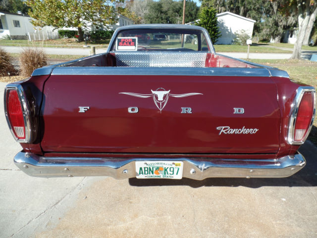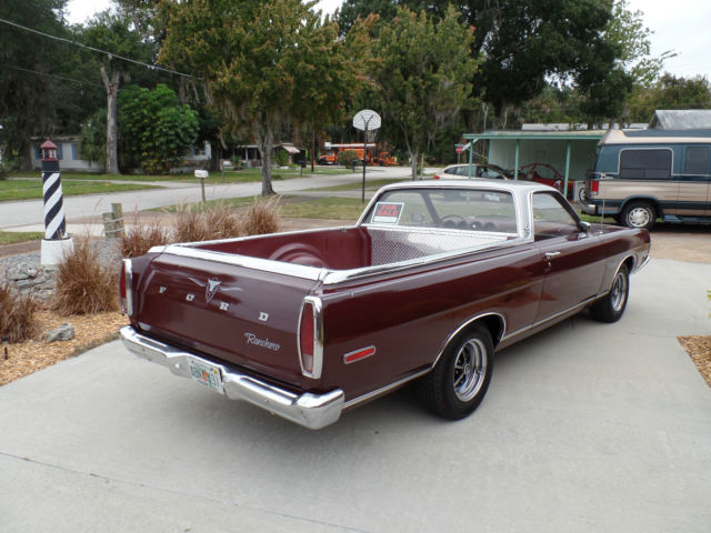 For sale is a cool 69 ranchero that i purchased in arizona and has all original panels with no rot on the floors,bed or roof! This ranchero has a 302-2v carb with a C4 auto trans.The only option is power steering- it has manual drum brakes and no A/C! The following work has been done- timing chain and gears-tune up with pertronix electronic ignition- carb rebuilt- new radiator-water pump-fuel pump. The ranchero was painted the original vintage burgundy paint color with a silver metallic roof and the interior has been refreshed recently. The aluminium diamond plate was installed for show only! There is no rot in the bed or floor pans under it! I purchased this ranchero to go to swap meets and shows to sell of some of the extra parts in the shed. Now that i have sold the parts i no longer need it so it is available for someone else to enjoy. This is a great " Driver Quality" ranchero that runs good-Stops straight and goes down the road really nice! As with any older car it still could use a few cosmetics and if you call Steve @ 386-761-8414 i will go over this cool ranchero with you. Also this ranchero is for sale locally and has a clear florida title and the MILEAGE IS EXEMPT although the car drives like an 88000 mile vehicle! I'M A COLLECTOR HOBBYIST AND DON'T NEED HELP SELLING THIS VEHICLE AS I DRIVE IT AND USE IT OFTEN!