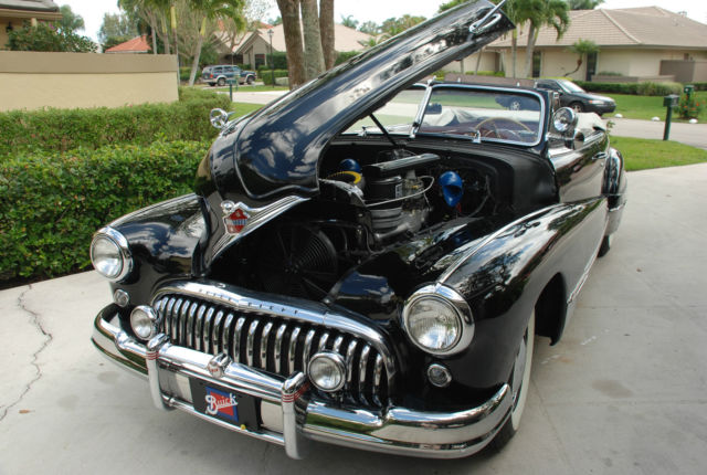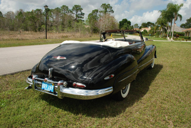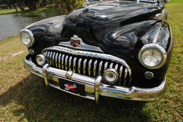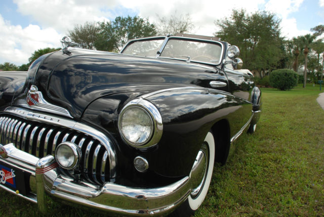 I BOUGHT THIS CAR FROM AN ESTATE, PREVIOUS OWNER HAD THE CAR FOR 40 YEARS. HE PASSED AWAY AND THE CAR WAS PUT UP FOR AUCTION. I'VE HAD A LOT OF FUN WITH THIS CAR AND SPENT A LOT OF TIME FIXING ALL THE ITEMS I FOUND. HERE'S WHAT I REMEMBER: NEW COKER TIRES, NEW WINDSHIELD, REBUILT THE CARBURETOR, HAD THE RADIATOR BOILED OUT, INSTALLED ELECTRIC ASSIST FAN, HAD ALL CHROME REDONE, DISASSEMBLED AND POLISHED THE STAINLESS GRILL, FIXED FOG LIGHTS, CONVERTED FROM GAS PEDAL START TO PUSH BUTTON. (IF YOU WANT TO CONVERT BACK TO GAS PEDAL START, STARTER WORKS FINE.) THE 3 SPEED MANUAL TRANSMISSION SYNCHROS WERE WORN SO I HAD THE TRANSMISSION REBUILT AND HAD A NEW CLUTCH, THROWOUT BEARING AND SEALS INSTALLED. ALSO INSTALLED NEW HYDRAULIC MOTOR AND LINES FOR CONVERTIBLE TOP AND WINDOWS. I TAKE THIS CAR TO ALL THE LOCAL CAR SHOWS AND EVERYONE LOVES IT. I DRIVE THIS CAR EVERY WEEKEND WEATHER PERMITTING. THIS IS A GREAT FUN DRIVER, NOT A SHOW CAR. ALTHOUGH THIS CAR IS STRONG ENOUGH TO BECOME A SHOW CAR WITH ENOUGH MONEY. VERY ORIGINAL 1947 BUICK SUPER CONVERTIBLE. STRAIGHT 8 ENGINE, IN EXCELLENT DRIVER CONDITION. RUNS LIKE A DREAM. CAR SOLD AS-IS, $1,000 DEPOSIT REQUIRED WITHIN 3 DAYS OF BID CLOSING. SERIOUS BIDDERS PLEASE. MAY CONSIDER PARTIAL TRADE. THE CAR CAN BE INSPECTED IN PALM BEACH GARDENS,FL BY APPOINTMENT. CALL OR EMAIL MIKE 561-722-3826