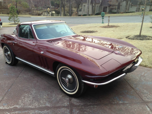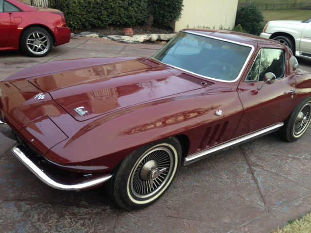 HERE IS YOUR CHANCE TO OWN A MIDYEAR CORVETTE AT A REASONABLE PRICE * 1966 CORVETTE COUPE * This CAR CAN BE DRIVEN CROSS COUNTRY * CURRENTLY MAROON EXTERIOR - ORIGINALLY YELLOW * INTERIOR BLACK * PAINT 20 YEARS OLD - PRESENTABLE SOME MINOR SCRATCHES AND SOME SMALL STRESS CRACKS * EXCELLENT BODY - STUNNING DOOR FIT * INTERIOR EXCELLENT CONDITION * FACTORY AIR CONDITIONING * FACTORY POWER STEERING * FACTORY POWER BRAKES * FACTORY POWER STEERING * FACTORY POWER WINDOWS * FACTORY POWER ANTENNA * FACTORY TELESCOPIC STEERING COLUMN * HEADREST SEATS * LEATHER SEATS * TEAK STEERING WHEEL * KNOCKOFF WHEELS - WESTERNS * 327/350 - COMPLETELY REBUILT MATCHING NUMBERS * 327/350 ENGINE HAS 40 MILES COMES WITH DYNO SHEETS AND PERFORMANCE BUILD FOLDER * 4 SPEED - COMPLETE NEW GEARSET * NEW CLUTCH PRESSURE PLATE - THROWOUT BEARING * NEW SHIFTER - LEVERS - BUSHINGS * REBUILT CALIPERS - PADS * NEW EXHAUST SYSTEM * NO RUST BIRDCAGE * CALIFORNIA CAR MOST OF ITS LIFE * ALL 3 FRONT WIRING HARNESSES REPLACED * NOS AC COMPRESSOR - CONVERTED * UNDER HOOD RESTORED - NEW SHIELDING * NEW CONDENSOR - ALL ENGINE COMPOMENTS NEW OR REBUILT * CAR CAN BE DRIVEN ANYWHERE * ORIGINAL TRIM TAG * ORIGINAL VIN TAG - EARLY 66 * MATCHING NUMBERS CAR * A GREAT DRIVER OR INVESTMENT CAR * ONLY 12% HAD FACTORY AC * VERY HIGHLY OPTIONED CAR * RARE SUNFIRE YELLOW ORIGINAL COLOR 8% * CLEAR TITLE * WILL BE ADDING MORE PICS WHEN IT STOPS RAINING
