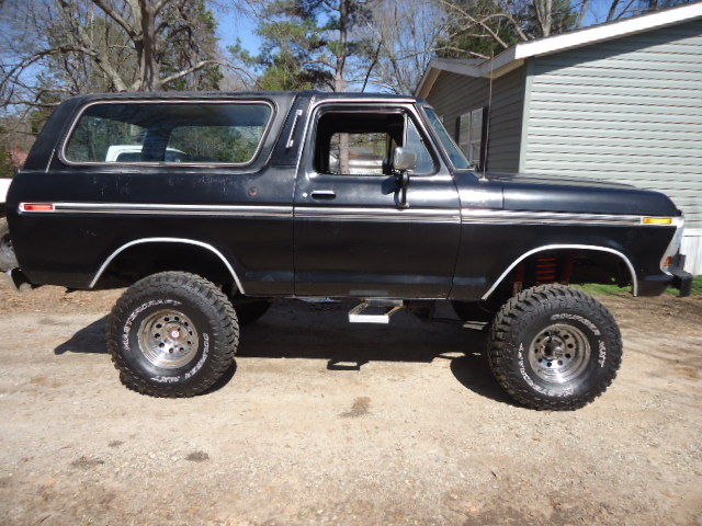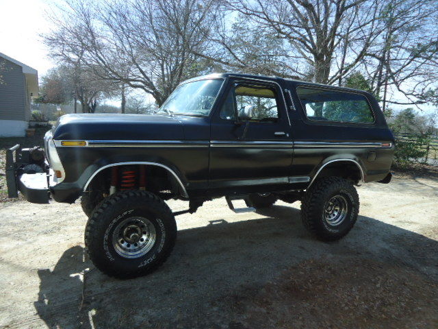 selling my 79 bronco. it has a new radiator, battery, 35" tires, axles and yukon locker in the rear,and the engine and transmission have been rebuilt. it accelerates very smooth and drives great. the ac works for about 3 to 4 weeks then leaks down and needs recharged. there is no radio but it has long tube headers and new flowmaster mufflers that sound great. the paints not great and it could use some door panels and cleaned up some on the inside. the warn 8274 winch works great and has the remote for it. it has an aluminum intake and 4 barrel edelbrock carb. the engine was rebuilt back stock its not real wild just reliable. the fuel gauge and speedo work and it idiot lights for the oil pressure work but the temp in the dash dose not. it has a temp gauge added. the rear window quit working a few weeks ago and needs a motor but i have not had time too fix it. the body has no rust issues or dents but could use paint. floors are rust free as are the doors and tail gate. this could be a 10000 dollar bronco with a bit of work. i am selling this and a dodge w250 truck but will keep witch ever dosent sell. i like driving this and its a comfortable truck to drive. it would drive anywhere too.