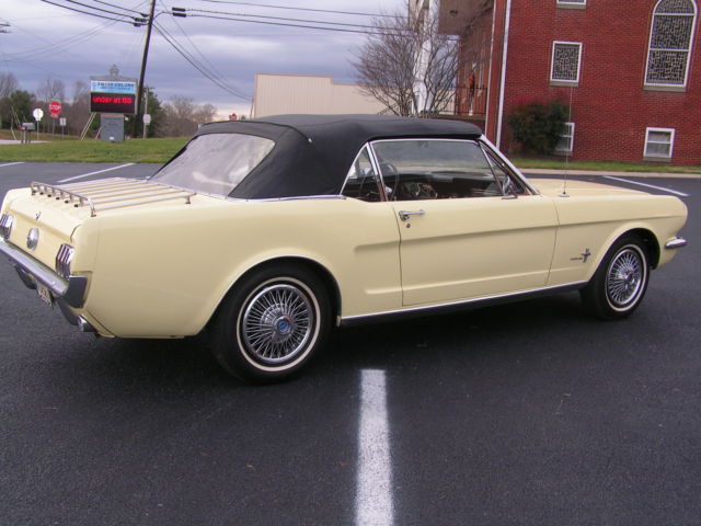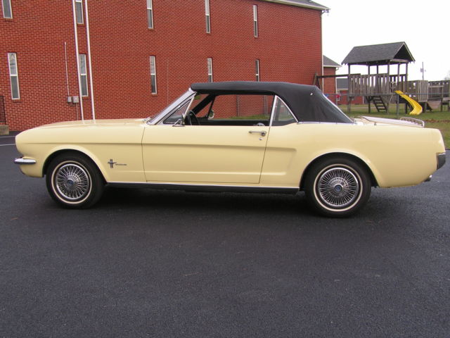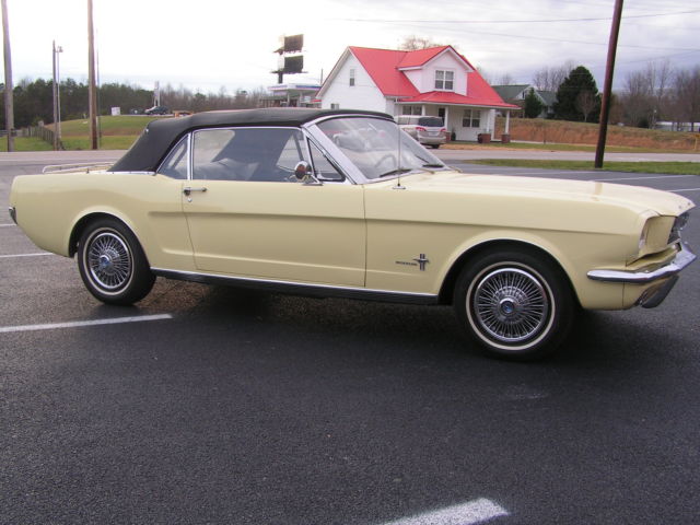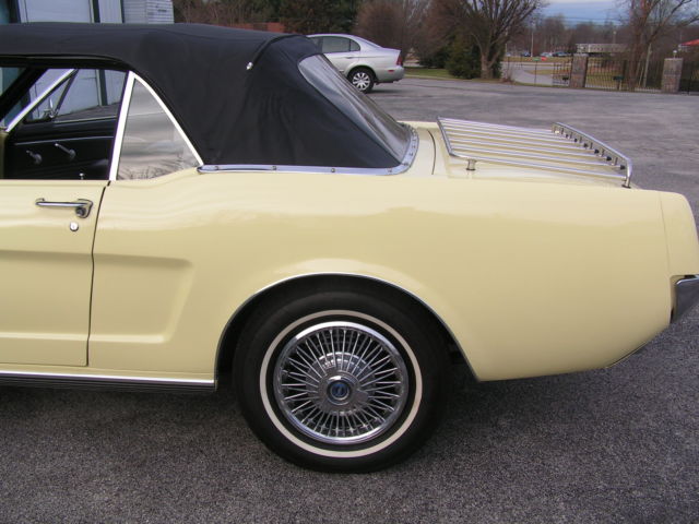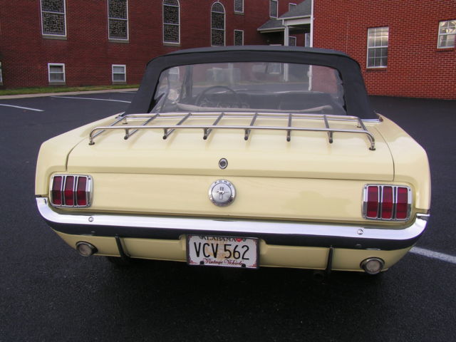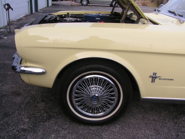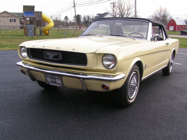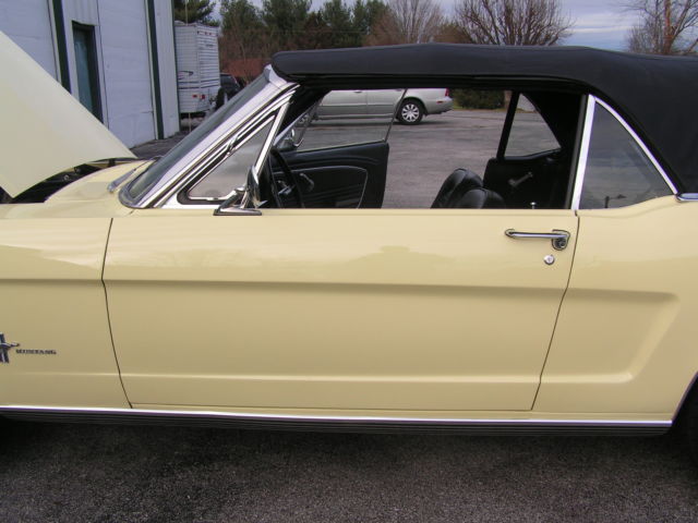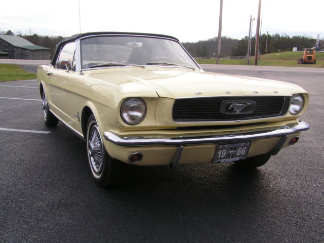 OUTSTANDING OPPURTUNITY TO OWN A TRULY UNIQUE FORD MUSTANG CONVERTIBLE! PRODUCTION DATE ON VIN TAG INDICATES THIS CAR WAS ONE OF THE LAST 1966 CONVERTIBLES PRODUCED AT THE METUCHEN PLANT. ESTATE DISPERSAL ALLOWS THIS CAR TO BE OFFERED TO PUBLIC. THIS 1966 FORD MUSTANG CONVERTIBLE IS A BEAUTIFUL CAR THAT HAS SEEN COMPLETE RESTORATION! HIGHLY DESIRABLE SPRINGTIME YELLOW CORRECT PAINT WITH BLACK CONVERTIBLE TOP AND BLACK INTERIOR. AS GOOD AS IT GETS FOR A SUMMER DRIVE DOWN MEMORY LANE ! HIGHWAY READY FOR THE DRIVE HOME. THIS CAR HAS A VERY RARE BENCH SEAT OPTION WITH FOLD DOWN ARM REST. OTHER GOODIES INCLUDE LUGGAGE RACK ,AIR CONDITIONING, 6CYL. 200 CUBIC INCH ENGINE , AUTOMATIC TRANMISSION ,POWER STEERING AND WIRE WHEEL CAPS. IF YOU HAVE BEEN LOOKING FOR AN INVESTMENT THIS IS ONE YOU WILL NOT WANT TO MISS OUT ON! THESE CARS ARE VERY SELDOM OFFERED STRAIGHT FROM AN ESTATE AND THIS ONE WILL BE SOLD AND THE NEW OWNER WILL BE DELIGHTED ! DEALER LISTED FOR THE ESTATE . CALL 859 588 1485 FOR QUESTIONS.