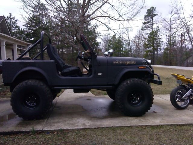. ITS A RARE 1978 JEEP RENEGADE LEVI EDITION 4X4 WITH THE 304CI V8 MOTOR WITH A FOUR SPEED TRANS, TOOK IT IN ON A TRADE' I DONT KNOW WHAT ALL HAS BEEN ADDED TO THIS NICE JEEP.. IT RUNS AND DRIVES GOOD CRANKS RIGHT UP SHIFTS GOOD AND ALL, VERY STRONG.. THINGS THAT I HAVE NOTICED IT LEAKS A LITTLE OIL MAYBE FROM THE REAR MAIN SEAL IM NOT 100% SURE. . FEEL FREE TO ASK ANY QUESTION I WILL BE 100% HONEST ON WHAT I KNOW ABOUT IT.. IT HAS LIKE NEW 36X13.50 15LT SUPER SWAMPERS IROX TIRES 85% LIFE ON TIRES, THE WINCH IS AN XRC8 BY SMITTY.. MILEAGE GAUGE READS 5O,827 IT DOES WORK.. ALSO IT COMES WITH DOORS AND THE TOP. I JUST SEEN TODAY IT HAS A CD PLAYER AS WELL BUILT INTO THE CONSOLE SEE PICTURES.... ' CAN SEND MORE PICTURES UPON REQUEST, THIS JEEP IS VERY SOLID, AND FUN TO DRIVE IT GETS TONS OF ATTENTION AND LOOKS BETTER IN PERSON.. SO COME SEE IT AND TAKE IT TO ITS NEW HOME......... BUYER MUST PICK UP, UNLESS YOU PROVIDE A SHIPPER... ~***NOTE- THIS JEEP HAS (NO TITLE) IT HAS NO NEED FOR ONE ITS OVER 35YEARS OLD, LESS MONEY YOU HAVE TO SPEND, COMES WITH A CLEAN BILL OF SALE FOR OWNERSHIP' SERIOUS INQUIRES ONLY PRICE REDUCED TO 5,500 BOTTOM DOLLAR THANKS AND GOD BLESS