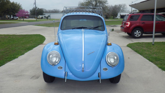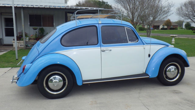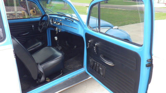 This Beetle is in great condition, drives and rides as well. There are new floor pans on it as well as new brakes all around, New engine overhaul completed about 500 miles ago and the engine was bumped to 1600 cc at this time. The overhaul started with a new block. Nice amount of chrome on the engine. New Retro Sound stereo and speakers recently installed. Tires are new as is the roof rack. The paint is in great shape and changes colors slightly in the sunlight. It is a two tone blue/cream. The interior has black seats and door panels and white head liner. The car had a ground up previously and remains in great shape. If you're looking for a driver that hasn't been abused and doesn't need any work this is the one. Also what goes along with the car are maintenance manuals, assorted additional parts, a new 38mm dual throat carburetor set up and several special tools. I am setting a short bid time as I need to do some business travelling and will be gone shortly.