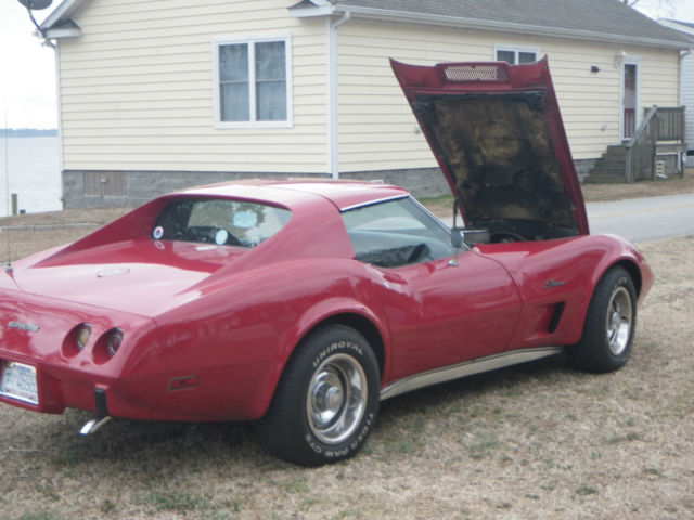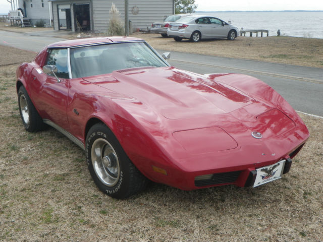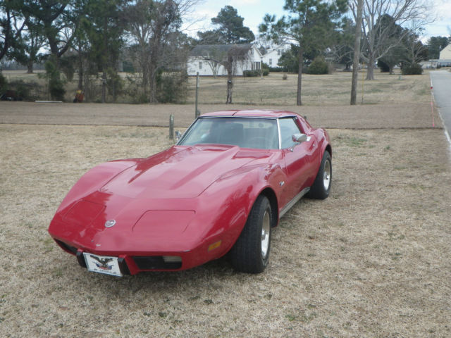 nice driving 1976 vette with new leather seats, new brake pads with rebuilt calipers with SS pistons and new flex brake hoses, good tires, rallye wheels, good interior, T-tops, cold AC with 134A conversion, new belts, new tune up parts, fresh oil, new battery, Carter AFB, headers, new door handles and side view mirrors. This vehicle stops and tracks straight and true with power steering and power brakes. Headlights operate correctly. Jack in car and spare tire in tub. Vehicle needs TLC on the front bumper and clock and ammeter. Solid birdcage. All in all a nice vehicle for driving or cruise ins. Due to size, age and flexibility I am selling this vehicle but I will not give it away. Doesn't cost anything to leave it in the garage and start once a week. Have a reasonable reserve on it and will sell for the reserve price. Have to relist this item due to a suspicious buyer cancellation by eBay. Had a scam buyer on Craigs list might be one in the same. On Mar-07-15 at 08:08:24 PST, seller added the following information: