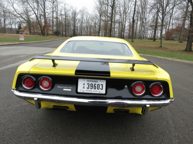 1972 Plymouth Barracuda This car has all the power you need Car has good paint job no rust issues The car came from Atlanta Georgia 440 engine with Holley 4 barrel carburetor Power steering 4 speed transmission on the floor MPH, gas, alternator gauges all work Wipers work Has JVC AM/FM CD player Interior is good Dash is good Tires P275/60R15 For more information or pictures Call 423-744-4973 or Email dhpryor62@gmail.com Please no salesmen calling, I do not need help selling. Information about owner: Hello my name is Danny Pryor and I own Show Car Classic. I am located in the friendly city of Athens, Tennessee. It has always been a dream upon retirement that I open a Classic car lot. So after 25 years of excavating, I did. I have been in business for over 7 years. I have an assortment of car, all models. I am half way between Knoxville and Chattanooga on interstate 75 exit 49. For Payment: I do accept cash or cashier check verified by a bank. Deliver: If I deliver a delivery fee will apply in addition to the price. Email dhpryor62@gmail.com Danny Pryor cell phone 423-744-4973 4N Congress Parkway Athens, Tennessee This vehicle is not a new car! Its old and things have been changed over the years! Please come and inspect it for your self before you buy it. My standards may not be yours, I describe it as I see it, you may see it different. This vehicle is being sold as is , where is with no warranty, expressed written or implied. My description is not an inspection, its just to give you feel for the car before you come inspect. The seller shall not be responsible for the correct description, authenticity, genuineness, or defects herein, and makes no warranty in connection therewith. No allowance or set aside will be made on account of any incorrectness, imperfection, defect or damage. Any descriptions or representations are for identification purposes only and are not to be construed as a warranty of any type. It is the responsibility of the buyer to have thoroughly inspected the vehicle, and to have satisfied himself or herself as to the condition and value and to bid based upon that judgement solely. The seller shall and will make every reasonable effort to disclose any known defects associated with this vehicle at the buyer's request prior to the close of sale. Seller assumes no responsibility for any repairs regardless of any oral statements about the vehicle.