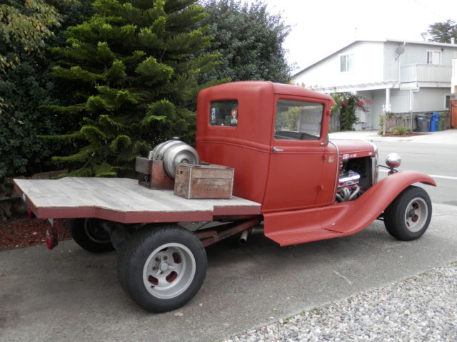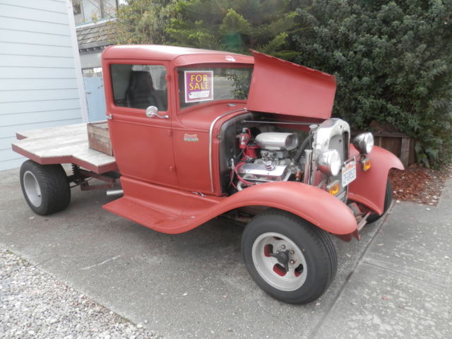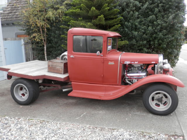 1931 Ford model A pick up altered to a flat bed. Chevy 283c.i. engine, Turbo 350 transmission, 1.940 camel hump heads, Comp cams Thumper series cam, Holley 600 carb (performance enhanced by TMP carbs), Doug Thorley ceramic coated full length headers, MSD Pro Billet distributor, B&M star shifter, Flaming River steering box, Heidts Superide coilover rear shocks, MSD Blaster coil, Mr Gasket electric fuel pump, MSD super conductor plug wires, remote oil filter, Sun water temp, amp and oil pressure gauges, front air shocks, Mickey Thompson sportsman 26/12/15 rear tires, all new brake lines and rebuilt four wheel drum brakes, all new EZ2Wire wiring harness, new aluminum radiator, front end completely rebuilt , new front spring, new safety glass windshield. All engine work done by Chris's Precision Machine "home of Slayer racing engines." Vintage slot mags, Olympia beer keg fuel tank. Runs and drives great! Driven weekly. Rattles over the bumps, but it is a '31. I drive this weekly. Fun car! Gets lots of thumbs up wherever I go. Very dependable. Loads of fun. Awesome hot rod. Took me two years to build, I hate to get rid of it but it is time to move on. My loss your gain. Please ask any questions before bidding. Buyer is responsible for all shipping costs and arrangements.