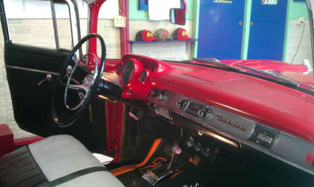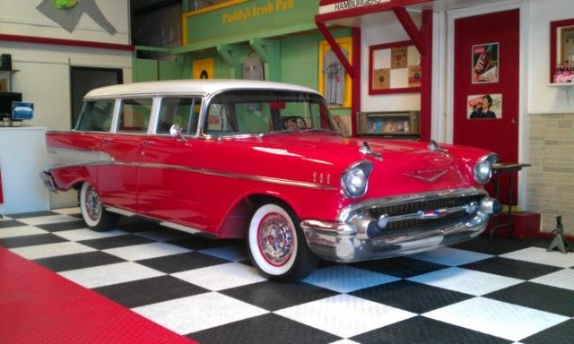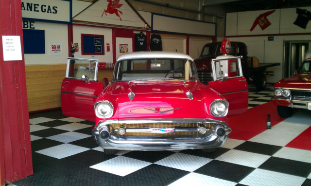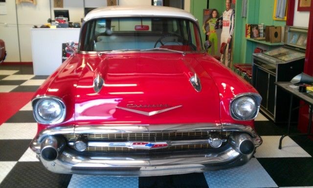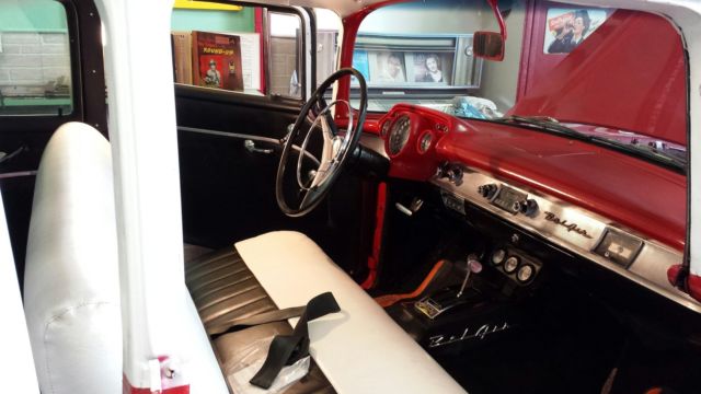 Sonoma Classic Motorcars is proud to present this 1957 Bel Air Townsman 4 Door Wagon. One of the very few remaining in this exceptional condition. Engine has been rebuilt and transmission has been replaced from 3 on the tree to automatic. New paint, headliner,cargo area and carpet. The motor, carburetor, body and frame are all matching numbers. The body is laser straight, rides, runs and sounds great. with the dual exhaust this baby sounds like a muscle car. Great family car to take on a weekend cruise to the beach, will seat up to eight. Only 27,375 were made back in the day. Be the person to own one of the rare remaining classic 1957 Chevrolet Bel Air Townsman Wagons. I can arrange all shipping. We can add power steering and disc brakes for an additional fee if requested. Please contact Marvin on his cell at 415-601-7060 if you have any questions. Engine: 283 CID V8 220 Horse Power 4bbl Carb Transmission: B & M Shifter Automatic Transmission TH350 Brakes: Drum Color: Bright Chevy Red and White Factory Color Interior: Black and White Seats Wheels: Original Spinner Rims Wide Whites