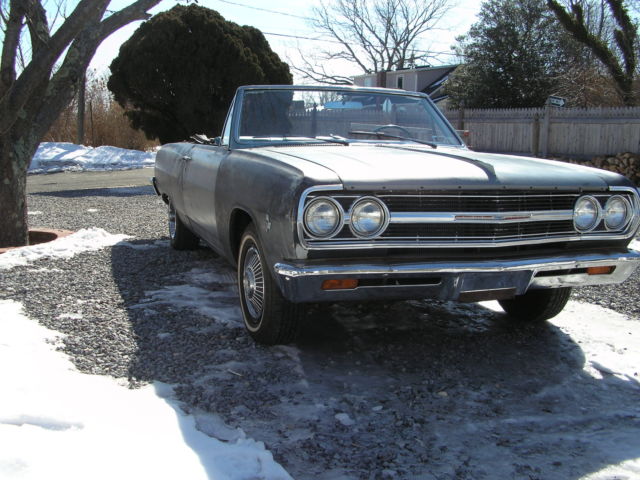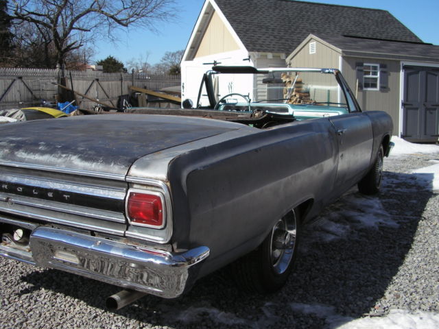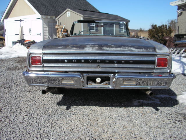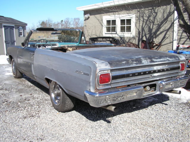 HELLO FELLOW EBAYER, HERE MY GIRL CLASSIC CHEVY CONVERTIBLE .I HAVE DONE SO MUCH JUST DO NOT HAVE THE TIME OR FUNDS TO FINISH HER.SHES SPORTING A 1965 283 MALIBU ENGINE AND TRANS WITH 72,000 ORIGINAL MILES,NEW STARTER,POWER STEERING,2 SPEED POWER GLIDE TRANS ,10 BOLT REAR, HOOKER HEADERS, DUEL EXHAUST WITH GLASS PACK MUFFLERS, NEW BATTERY,2 SPEED PARK SPRITZER WIPER MOTOR,NEW BLADES NEWLY RECOVERED INTERIOR ORIGINALTWO TONE TURQUOISE COLOR FRONT AND REAR SEATS,FRONT SEAT HAS DUAL HEATED SEAT DRIVERS /PASSENGERS,FRONT SEAT BELTS, REAR SEAT BELTS (NOT INSTALLED YET). NEW GAS TANK, NEW SENDER, NEW PICK-UP, TANK STRAPS, NEW STAINLESS STEEL FUEL LINE , NEW FUEL PUMP, REBUILT ORIGINAL 2 BARREL CARB NEW DUAL POWER MASTER CLY, NEW STAINLESS STEEL BRAKE LINES 4 NEW WHEEL CLYNDERS, ORIG DRUMS STOPS ON A DIME FRONT WHEELS STOCK 14" STEEL RIMS WITH ORIGINAL HUB CAPS REAR WHEELS CORVETTE RALLY WHEELS CENTER CAPS TRIM RINGS GOOD TIRES ALL AROUND NICE TIGHT DASH STEERING COLUMN, STEERING WHEEL, NICE ORIG DOOR PANELS NEW ARM REST AND PADS , NO CARPET YET NEW BLACK CONVERABLE TOP IN BOX, POWER TOP CLYNDERS AND PUMP NOT INSTALLED GOOD USED ALL KEYS WORK NEW TRUNK FLOOR PANEL INSTALLED. A FEW SMALL PATCHES ON PAN HERE AND THERE 6X6 PLUS INCLUDED ALL REAR ORIG USED SHEET METAL FROM PARTS CAR COMPLETE REAR FENDERS BOTH SIDES AND MISC PIECES YOU WILL NEED TO COMPLETE REAR REPAIR SECTIONS SHES A GREAT RUNNING DRIVING PROJECT REALLY NEEDING COMPLETION PLEASE BRING THIS GIRL BACK VERY DESERVING HAVE ALL CROME TRIM THAT YOU SEE IS MISSING ,TRUNK IS FULL , ,