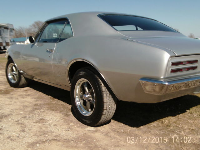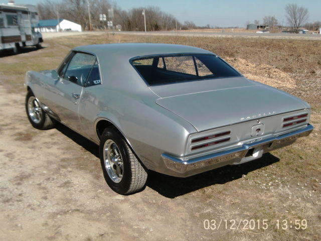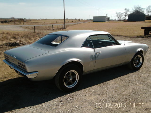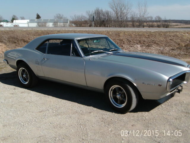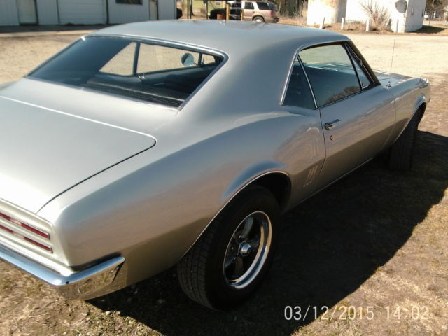 Up for bid is a sweet 1967 Pontiac firebird, this is the first year for the firebird so it has the side window vents(one year only), has a rebuilt GM 350 small block with a 700R4 overdrive transmission with American autowire electronic torque converter lockup kit, which allows it to run down the road so much smoother and gets a lot better gas mileage! The body is in great shape, repainted a GM silver with platinum stripe on hood, the left quarter panel was replaced do to dent and rust behind wheel the rest of the metal is original, the floor pan and trunk pans are in great shape, wheel wells are great, this car is very solid. The gaps are good everything lines up good, front bumper and window trim are original and in good shape but are starting to show signs of age. The glass is original with exception of driver glass which I believe was replaced before with an aftermarket one, no cracks or breakage. This car does not have power steering or power brakes but the old front drum brakes were taken off and replaced with a new disc brake setup and they stop the car great. Has a posi-trac rearend with 3.55 gears. This is a car that you can drive, not to over the top that you want to keep it on a trailer. List of new parts on the car: New aluminum radiator and electric fan, distributor, plugs, wires, chrome alternator, water pump, electric fuel pump, belt, hoses, battery, aluminum intake, edelbrock 600 CFM carb., windshield wiper motor, master cylinder, brakes, rotors, wheel bearings, calipers, brake lines, fuel line, gas tank and sending unit, shocks(air shocks on rear), wiring harness, B&M sport shifter, Steering wheel, rear bumper, door handles, locks, wheel house moldings, complete new interior, seats, carpet, door panels, dash, glove box, original am radio(not working), original seat belts, all new weather stripping and door seals, chrome headers with dual exhaust. Wheels are new 15" aluminum 5 spoke with new 215/65/r15 General tires This is a fun to drive old school firebird, no park assist or GPS with this one!, just pull out your road map and take a trip down memory lane in a great old cruiser from the glory day's of tire burning American muscle. Buyer to pay down $500 deposit via PayPal within 48 hours of end of sale. The total remaining amount to be paid in CASH or Cashiers Check at time of pick up of vehicle. Buyer responsible for pickup/delivery of vehicle. Can possibly deliver for a fee. Car will not leave until paid for in full(including delivery if applicable) Ask any questions you may have on this car. NO RESERVE SO BID TO WIN! car is for sale locally so auction can end at any time