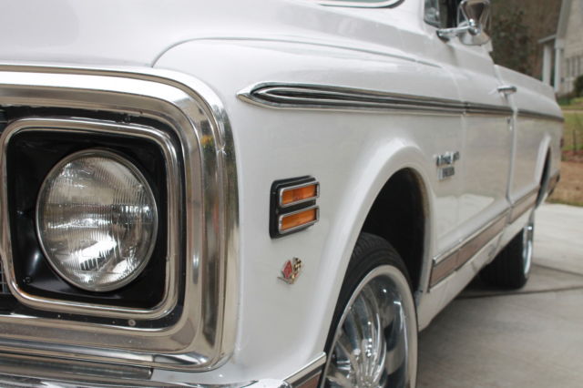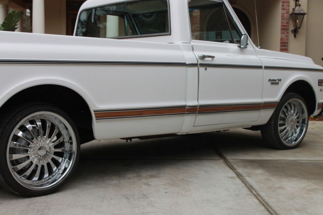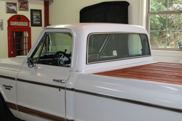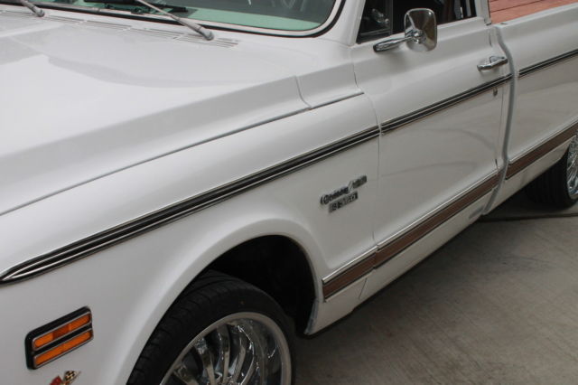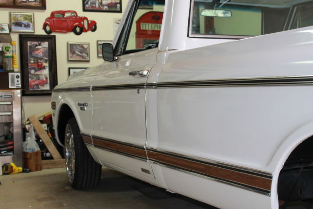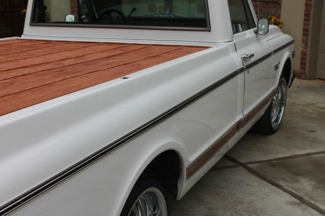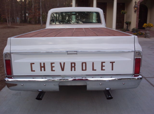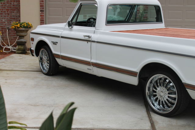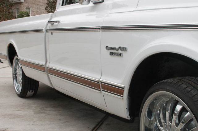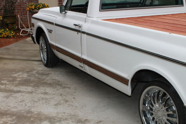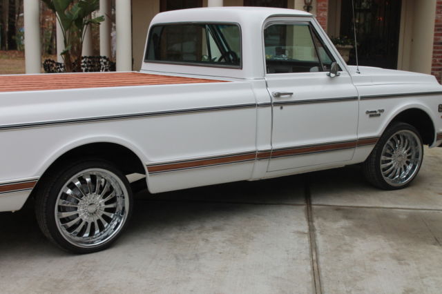 1970 CHEVY C-10 383 STROKER <<> TH 350 AUTO TRANNY FLEET<<>> SIDE THIS AUCTION IS FOR A GREAT C-10 1970 CHEVY FLEET-SIDE LWB THAT HAS HAD A FRAME ON RESTORATION THAT WILL BE SOLD WITH ALL RECEIPTS AND HISTORY OF ALL THE THINGS THAT HAVE MADE THIS TRUCK COMPLETE. THE INTERIOR HAS ALL NEW BENCH SEAT WITH NEW CARPET, NEW INSTRUMENT BEZEL, NEW SEAT BELTS AND UPDATED SHOULDER BELTS, NEW SILL PLATES, ALL LIGHTS AND GAUGES WORK,TURN SIGNALS WORK, DOME LIGHT WORKS, DASH IS UN-CUT WITH A WORKING DUAL POST CASSETTE PLAYER AND TWO 6 X 9 DOOR SPEAKERS. THE ENGINE BAY HAS A FRESH 383 STROKER PAIRED WITH THE TH 350 AUTOMATIC TRANSMISSION THAT RUNS AND SHIFTS VERY STRONG. TRUCK HAS A EDELBROCK INTAKE AND 4BBL CARB AS WELL AS HEI- IGNITION WITH DOUG THORELY HEADERS WITH DUAL EXHAUST THAT HAVE A DEEP MELLOW TONE. TRUCK HAS THE FACTORY POSI-TRACTION 12 BOLT REAR END<<>>POWER STEERING <<>> POWER BRAKES. THE EXTERIOR IS A GLOSS WHITE WITH NEW BODY SIDE MOLDINGS <<>> NEW CHROME BUMPERS FRONT & REAR <<>> NEW CHROME WINDOW RAIN GUARDS <<>> TRUCK HAS A CUSTOM BED COVER THAT LIFTS OFF <<>> THE BED HAS A WHITE SPRAY-IN BED LINER THAT MATCHES THE EXTERIOR COLOR <<>> NEW TAILGATE WITH WOOD GRAIN LETTERS <<>> FUEL TANK HAS BEEN REMOVED FROM BEHIND SEAT FOR SAFETY AND NEW FUEL TANK MOUNTED UNDER FRAME IN REAR WITH FILLER IN REAR OF BED <<>> BRAND NEW 20"s CHROME WHEELS RAPED IN 225/35ZR/20's XL RADIALS <<>> SUSPENSION HAS BEEN LOWERED ABOUT 3" WITH NO CUTTING . PLEASE TAKE TIME AND LOOK AT ALL THE PHOTO'S AND ASK ANY QUESTIONS BY EMAIL OR CALL ME AT 318-614-3214 THERE WILL BE A $1000 DEPOSIT (NO PAY-PAL) DUE WITHIN 24HRS AND ALL REMAINING FUNDS DUE WITHIN 5 DAYS. METHOD OF PAYMENT WILL BE BY WIRE TRANSFER OR CASH IN PERSON TRUCK OR TITLE (CLEAR TITLE IN HAND) WILL NOT BE RELEASED UNTIL ALL FUNDS HAVE CLEARED. BUYER IS RESPONSIBLE FOR COST OF SHIPPING <<>> I WILL BE GLAD TO ASSIST TRANSPORTATION COMPANY IN LOADING. I RESERVE THE RIGHT TO END AUCTION IF VEHICLE IS NO LONGER AVAILABLE FOR SALE THANKS FOR VIEWING MY AUCTION <<<<<<< GOOD LUCK >>>>>>>> BE SURE AND CHECK MY FEEDBACK