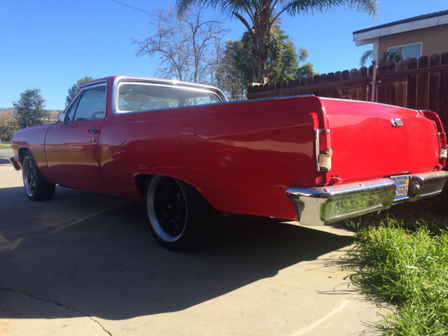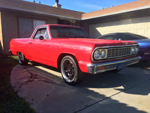 1964 Chevy El Camino deluxe clean title. Original A/C and power steering car.Very clean and straight. Car has no cancer or rust. Nothing under the car or around the windows. Body is in very good shape and hasn't really had any body work done to it. Car is all metal and not full of bondo. Has majority of the chrome trim and emblems not sure if its really missing any. Cars original color code is ember red all the jams and floor pans are the original color and is still in great shape. Would just need a repaint to match perfect, car has a decent red paint job as of now. Needs little things here and there, but its all there. Has a small block 350 with a holley 4 Barrel carb and hooker long tube headers. True dual exhaust dumped out of flowmasters car sounds very good and healthy. Has a 400 trans. Brand new alternator. Full MSD ignition system. Has brand new power steering pump and reservoir. Power steering works GREAT squeaks a little the first 30 seconds of driving it then it goes away! TIRES IN GREAT SHAPE! Just adjusted and went through the breaks and they all work good for 4 wheel drums! New Belts! Has a brand new painless wiring harness that was installed not to long ago. Cars needs little things here and there but nothing major sold as is. could be a great cruiser with very little money into it. ALL LIGHTS, TURN SIGNALS, AND BREAK LIGHTS WORK GREAT! The bed is in great shape and the tailgate works perfect. Bed was sprayed with a liner. Interior is clean with a new upholstered seat. Has Orignial door panels, also just put a nice wood grant steering wheel on it and also have a full sound system for it including a head unit that replicates the original one and has a aux hook up. Have rear speakers and front kicker panels with speakers. Everything is there and this baby is ready to goto a new home to be someones perfect weekend cruiser or daily driver, car is very reliable!