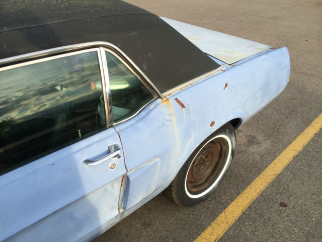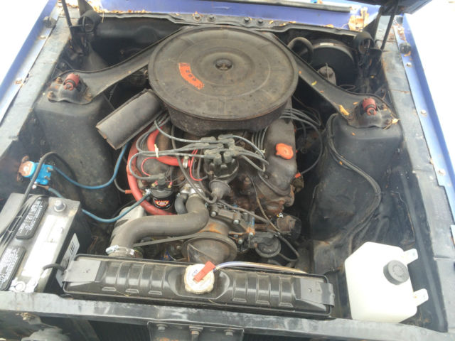 This car is a great start to a restoration.  This vehicle has a 289 with an auto transmission. Last year I got this car running and drove it for about 50 miles while it was on temporary registration. The engine runs strong! It has a new radiator, water pump thermostat and t-stat housing. New battery, new starter motor wiring, new air cleaner, oil filter, new oil, coolant, transmission fluid, new Distributor cap and rotor, and it has a pertronix coil and ignitor.  This car comes with all the lights for the car, all wiring was tested except the reverse lights, but i imagine they work too. All wiring is in tact and has been visually inspected with no cut wires or issues.  This car comes with a rear bench seat, and high-back seats out of a '71 mustang. All the glass is in tact and the windows work. The door locks are fully functioning. The rear valance was replaced, but i have the key cam to put in it to match the keys for the ignition and door locks. This car also comes with the rear chrome bumper, rear valance, front half floor pans, and seat risers (passenger side are installed). The metal work needed: dent repair on rear quarter panel, driver's side rear half floor pans (passenger sides)  driver side floor pan floor supports (both sides) minor dent repairs. This car has had rear quarter panels patched or fixed on both sides, it was rear-ended, but the damage was professionally repaired and the car is strait. I'm sure there have been other repairs to this car, and it does need a full restoration, but it is a great start to a good project. This car could be on the road and daily driven with minimal effort.