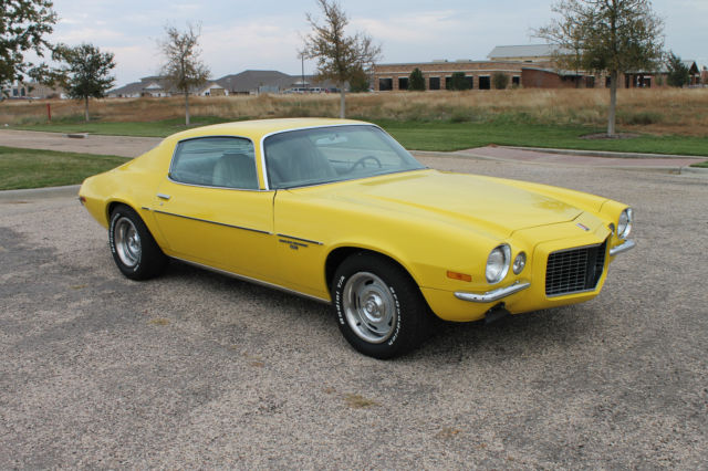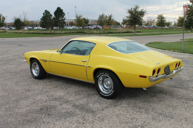 1971 CHEVROLET CAMARO RS Vintage Autohaus & Imports is proud to present this very clean example of a 2 nd . Gen Camaro RS. The car is a one owner bought new at Modern Chevrolet in Lubbock Texas and has stayed there until we purchased the car. This is an unmolested car in all original condition. Car is equipped with factory A/C, power steering, and power disc brakes in front. It has the original 350 engine and turbo 350 transmission with column shift. Mileage on the car is 67,354. The paint is in excellent condition as well as the interior. The car has been stored in doors and is rust free. The rally wheels and T/A tires really stand out on the yellow exterior. Car has a nearly new Kenwood remote control in dash stereo, and it drives and rides as well as it looks. We invite private inspection and do look at trades. WE ACCEPT TRADES For more information and photos please visit http://www.vaitx.com or call Vintage Autohaus & Imports at 806-359-9600. This vehicle is being advertised locally, we reserve the right to remove the listing at any time. We will accept trades. ZERO FEEDBACK OR NEWLY SIGNED UP BIDDERS MUST CONTACT US FIRST. DISCLAIMER This vehicle is being sold as is, where is with no warranty, expressed written or implied. No allowance or set aside will be made on account of any incorrectness, imperfection, defect or damage. Any descriptions or representations are for identification purposes only and are not to be construed as a warranty of any type. It is the responsibility of the buyer to have thoroughly inspected the vehicle, and to have satisfied himself or herself as to the condition and value and to purchase based upon that judgement solely. The seller shall and will make every reasonable effort to disclose any known defects associated with this vehicle at the buyer's request prior to the close of sale. Seller assumes no responsibility for any repairs regardless of any oral statements about the vehicle.
