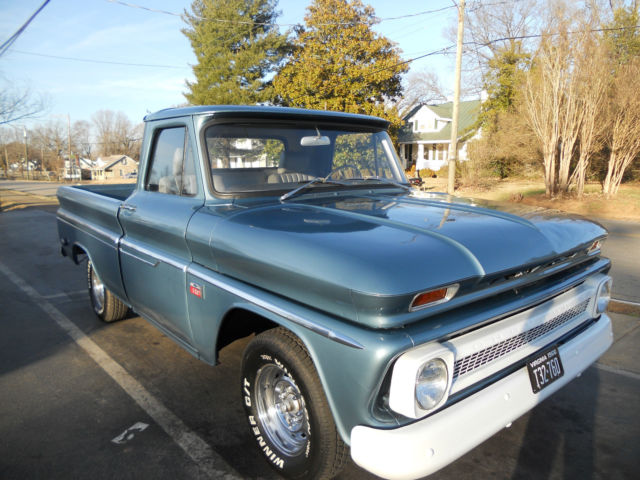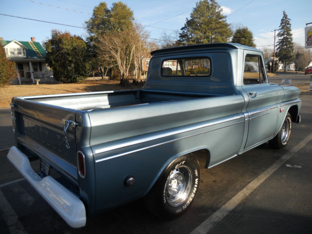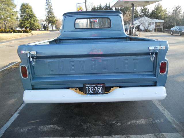 This 1966 pickup has the original inline 6 cylinder motor - casting number 3877178, transmission (has been switched from 3 on the tree to a 3 speed in the floor with a Mr. Gasket conversion kit), and rear end. It has chrome wheels and the tires are 90%. The truck was restored in 2004 and 2005 by a gentleman that passed away. The paint is still shiny and looks good from a distance but you are starting to see some surface rust on the truck. The chrome and trim has been replaced. The bumpers are painted white. The truck looks really good on the inside with bucket seats with no tears. All the glass is good. All the rubber has been replaced. It has new carpet inside. All the gauges work. The heater and heater fan work. The truck has a new exhaust system. The wood bed has been replaced with a piece of boiler plate.. The truck runs good and is a good driver. The truck was originally black in color. Call Me at 434-941-6514 with any inquires. Shipping will be the responsibility of the buyer. A $500 deposit is due at the end of the auction. The balance is to be paid at the end of 3 days. On Mar-09-15 at 18:06:54 PDT, seller added the following information: The fuel tank has been removed from behind the seat and installed under the rear of the bed. On Mar-12-15 at 10:58:41 PDT, seller added the following information: My phone no is 434-941-6514 , if u have any Questions