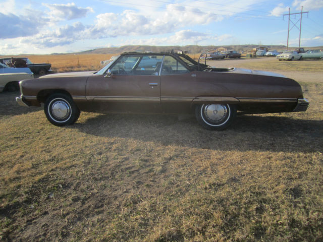 This Caprice convertible sat open to the weather for some years and is going to need a good portion of the floors replaced. It has some rust around the rear wheel openings. The underside is solid other than the floors. The pictures show the condition pretty well. The man I bought it from had bolted in a 305 Chevrolet V-8 in the car, but never finished the installation. The engine was open to the weather for years and no doubt is not usable. We are not to familiar with the Chevrolet market, but realize these are popular cars. We have to put a buy it now price on it, but are open for any offers. Please contact us with any questions. ALL SALES ARE FINAL. PLEASE ask any and all questions before the end of the auction. You can send a message through Ebay or give us a call at 605-348-4926 . SHIPPING IS BUYER'S RESPONSIBILITY. WE WILL STORE THIS ITEM FOR UP TO 90 DAYS AT NO CHARGE. We have this vehicle listed other places, and reserve the right to end the listing early. Check out my other items !