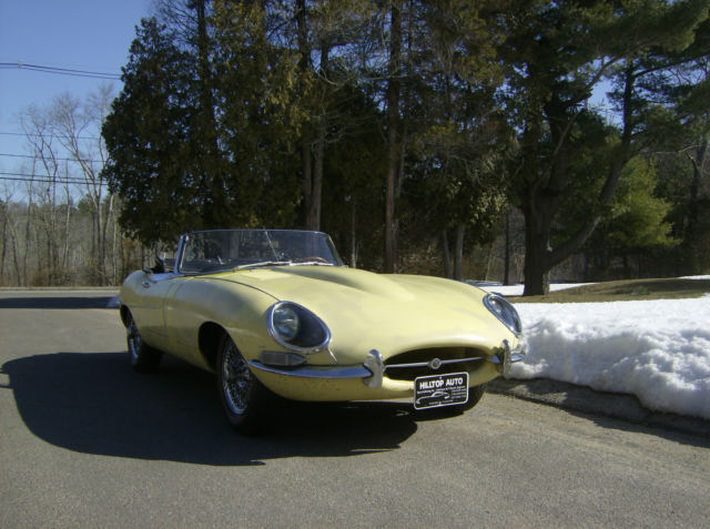 Hilltop Auto is offering for sale our stock #165 is a 3.8 liter, Series I XKE Roadster. It is a fully matching number car and came from a gentleman's estate in Minnesota. This is a true barn find that was not stored in a barn, but has been stored in a heated warehouse since 1979. The numbers of the car are as follows: Chassis - 881735 , Engine - RA7251-9, Body -R863, Gearbox - EB15405JS. The car is great original shape and is in super dry condition. There are no signs of any accidents and the bonnet, the doors and the boot close perfectly. We can find nothing missing, it even comes with a partially complete tool kit, the jack and the spare, which usually are missing. The engine turns freely, and it will start if the tank has fresh fuel put in it. We believe the 31,822 miles on the odometer to be the true mileage for the car due to the length of time the car has been kept in storage. It won't take much to get this car up and running so it can be enjoyed this summer. This a great opportunity to get your hands on a 3.8 liter E-type before they reach the unobtainable price. Additional photos available at http://hilltopjags.com/series-i-etypes-xke-.html link . Need assistance with shipping,we ship worldwide and can assist a buyer with obtaining a shipper that fits your needs. Transport to the closest container port, Elizabeth, New Jersey is $400. If you have questions and wish to speak to someone personally, please call Dan at 001-781-630-0185.