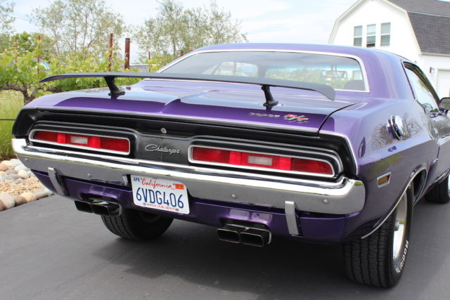 I am selling my beautifully show quality restored 1971 dodge challenger R/T. Full complete show quality restoration everything has been replaced or redone. Show quality perfectly straight FC7 plum crazy purple shines beautifully as well as all Chrome and trim. Brand New Mopar Performance 426 HEMI Crate Motor, headers, and exhaust just installed. A-833 4 Speed manual transmission with pistol grip shifter has been completely gone thru and rebuilt with a brand new clutch shifts perfectly smooth. 8-3/4 rear end with 3.92 gear. Drum brakes all around. All new interior is beautiful with Wood grain rally dash steering wheel and console new carpets seats headliner etc. This Show Quality Challenger R/T always stored in climate controlled garage is ready to show. Documentation and photos of its restoration. Clear California title in hand. $65,000 OBO Please Serious Offers Only. Thank you for looking. Also it does come with the 383 Magnum "not numbers matching" that was pulled out for the 426 and it's crated and ready to go. Originally built with a 383 4bbl and 4 speed in Plum Crazy Purple. J... Dodge Challenger S... Special 23... Two Door Hard Top N... 383 ci High Power 1... 1971 B... Hamtramck MI