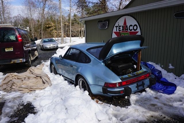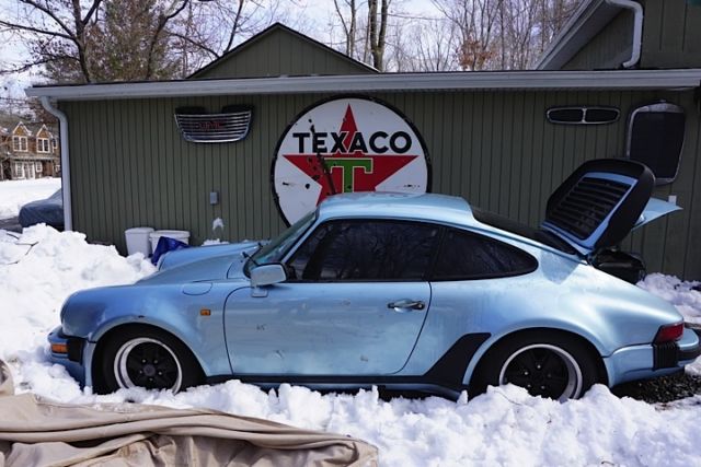 Im selling this for a friend. Car is located in New Jersey. Clean New Jersey title. The title shows 26000 miles. The current km is a replacement for the older one. This is what I was told This is a great opportunity to own a rear Porsche. This is a Iris blue with pasha interior non sun roof euro 930. This is believed to be a matching numbers car w/o coa. As you can see it is a project car. Last time it been on the road is 2005. There are no service records for the car, except verbal confirmation from Powertech that the car was regularly serviced there and it had a top end rebuild on the engine and the gearbox was refreshed sometime in 2002. The front half of the car will need to be repainted or you can spot paint where attention is needed. I would rate the paint a 8.5/9 on the areas that don't need attention. The paint looks to be original The drivers side door needs to be painted, because the car was sitting outside covered and moister got the the paint. There is suface rust in places, but no holes or rot. The headliner needs to be replaced. The dash needs to be recovered and the seats need reconditioning. The engine will start, but the owner says one of the oil lines is crack and needs to be replaced. This a fantastic car to get into if your looking to get in the 930 market . I can assist and arrange shipping