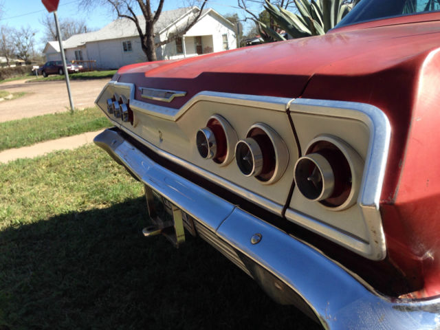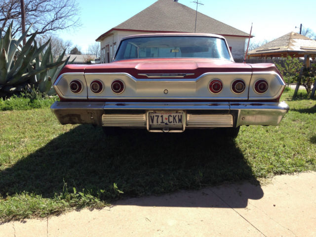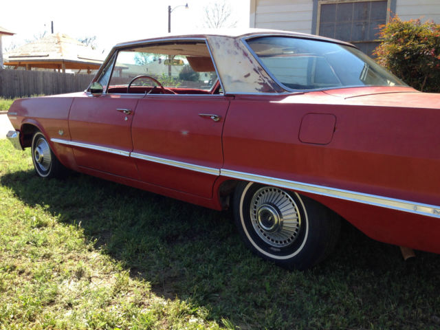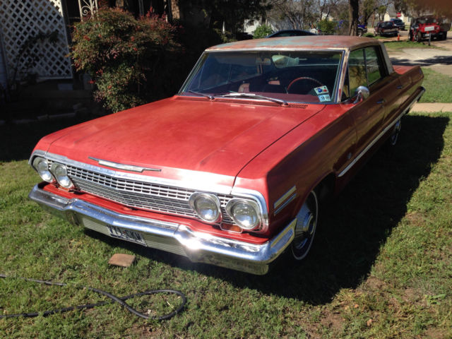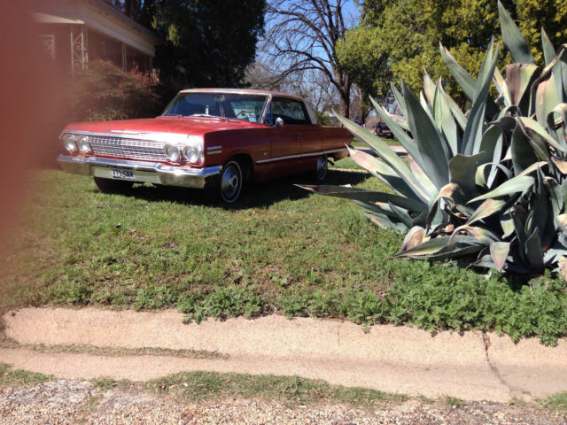 In a rare moment, I have decided to offer this pure classicl 1963 Impala 4 door "no poster". It has a carefully GM rebuilt 327 with @500 miles on it with matching numbers. It has factory A/C which is rare in a 1963 pointing to the fact that this is probably a prototype 1964. I have to go with a roll of the exact original upholstery for the interior. This car runs perfectly. I offer it to sale to someone who will love it as I have. This fine automobile is one of the few left from its great legacy. As the years go by we continue to lose automobiles of this type and caliber especially those which are completely original. There are some other compelling reasons to be interested in this rare vehicle. It has never been repainted, although it needs it now, nor has the interior been redone. I have a full role of the original upholstery. This car deserves to be in the possession of someone who can care for it, restore it, and who values the essence of American built automotive essence which it represents. It has spent its life in the dry area of West Texas. I am the 3rd owner and I have a clear title.