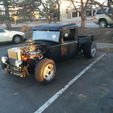 Titled as a 1930 Ford Model A, A clean Colorado title in my name. Very solid body, pictures are recent and accurate. Independent front suspension, rear end was off a Nissan truck. motor is a 350 from 1974 Chevy Nova with low miles 28,000, Elder brach carburetor, high performance coils (new), duel exhaust, plugs and plug wires are new, turbo 700 transmission. Drives straight down the road with no hesitation or pull, could easily be a daily driver, driven down highway at 70 plus mph with no issues. Everything works, blinkers, lights, gauges, and seatbelts. New 20 gallon fuel cell, new battery, leaks no fluids whatsoever. This is an actual metal truck, NOT a fiberglass kit car, and not full of bondo. Has tilt out front window with no cracks or chips, rear window is also in mint condition. Does not have side glass but can easily be installed if desired. I have extra parts as well, an original firewall and a hood from a 1940's firetruck that will fit on perfectly, which will all be included. Any questions please do not hesitate to call me at show contact info my name is Joshua. I will be happy to answer any questions or produce more pics, videos etc... Serious inquiries only please. seller added the following information: *** Videos of Trucks *** https://www.youtube.com/watch?v=9kEQKPJQDEM https://www.youtube.com/watch?v=Ay8d7Wla-WE https://www.youtube.com/watch?v=wyComWDIudI On Feb-26-15 at 21:00:12 PST, seller added the following information: *** Videos of Truck ***
