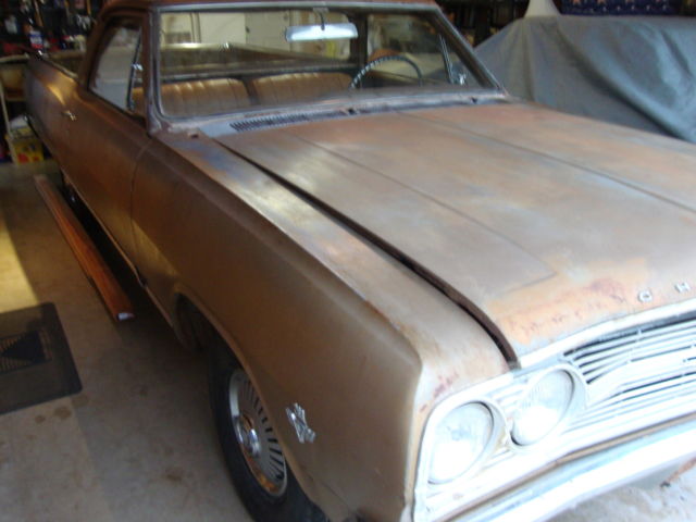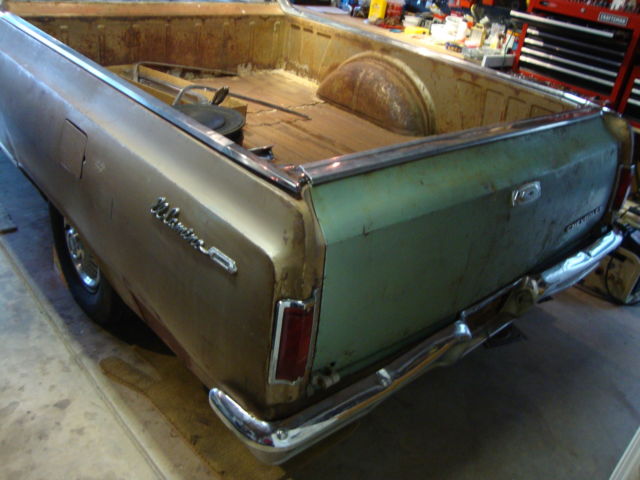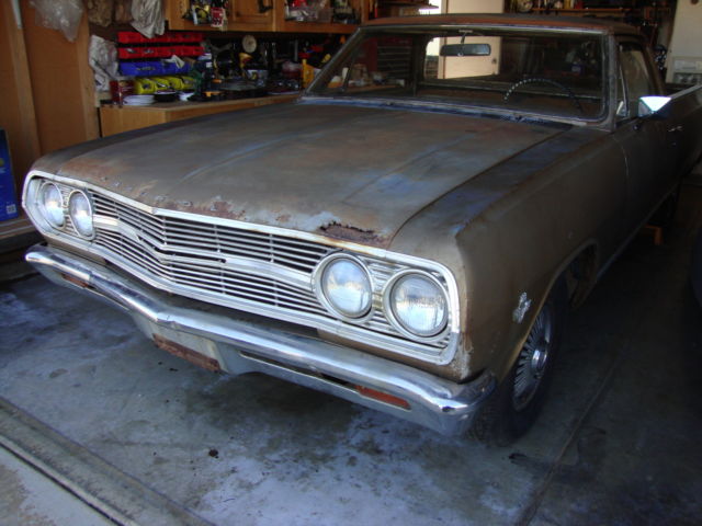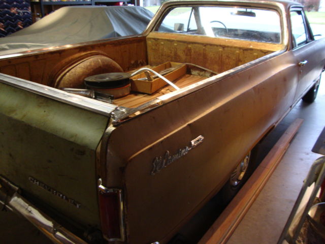 Up for auction is a 1965 El Camino. The El Camino has always been a California Car with original black and yellow license plates. Looks to be the original 283 motor. It was originally three on the tree and now has a Muncie four speed. Many new parts have been installed. It is not running or driving at this time. The motor does turn over and begins to start with a cup of gas poured into the carb. Lights are working, as wel as the turn signals. The wiring will need some looking at. If buyer is outside of California I will be keeping the original plates. Thanks for looking. New Parts: Fuel pump Plugs Wires Gas Tank - straps- filter Oil filter and oil New Radiator Hoses Reconditioned Radiator Bench Seat from 1968 El Camino Bed trim shown in photos and in box The car has some rust in the u sual areas. Front and back windows. Floor on drivers side could be repaired or replaced, passenger side looks to be replaced but not the best job. Hell hole will need to be replaced or repaired and also behind the bench seat. Frame looks to be in good condition. Some of the bed trim will still need to be installed; the two corners and also the two long pieces. I purchased the El Camino as a project. I am selling the car as I do not have the time to continue. This would be a good father-son project.