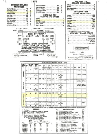 Beautiful, restored 1970 Pontiac GTO with 100% matching number engine, transmission and rear end. All original documents including dealer sales packet, original window sticker, build sheet, original owner warranty card (Protect-o-plate). PHS documented to confirm all information. This car is nearly a 45-year old time capsule. - Original owner registration receipts for 24 years - Early production car; VIN # 931 from Fremont, CA plant; built August 25, 1969 - Matching number "YS" engine and transmission with VIN stamping clearly visible - Original glass all around, including windshield, all with LOF stampings; no significant chips or scratches - Original seat belts with 1969 date codes - Cylinder Heads date code H049 (August 4, 1969) and H129 (August 12, 1969) - YS engine date code H049 (August 4, 1969) - Intake manifold 9799068 date code I129 - Rear end date code F119 (June 11, 1969) - Rochester Quadrajet Carburetor 7040564VP date code 2129 (July 31, 1969) - Binder of original owner service and maintenance receipts - Arizona car the entire time; originally sold at Westward Pontiac in Phoenix, AZ (building remains today) Beautiful re-paint in correct Polar White, no visible flaws. Black vinyl top replaced and in excellent condition. Chrome and trim in excellent condition Interior in beautiful condition Stainless steel exhaust No-rust frame and underside of car clean If you are tired of looking at cars that claim to be matching number or that claim to have original documentation and are then disappointed, then you need to look at this car! This is a rare opportunity to own a truly matching number and documented correct GTO. As they say, "they aren't making any more"! Bid with confidence and contact me with any questions. Thanks for looking and reading my listing!