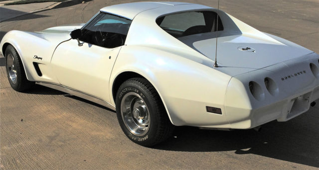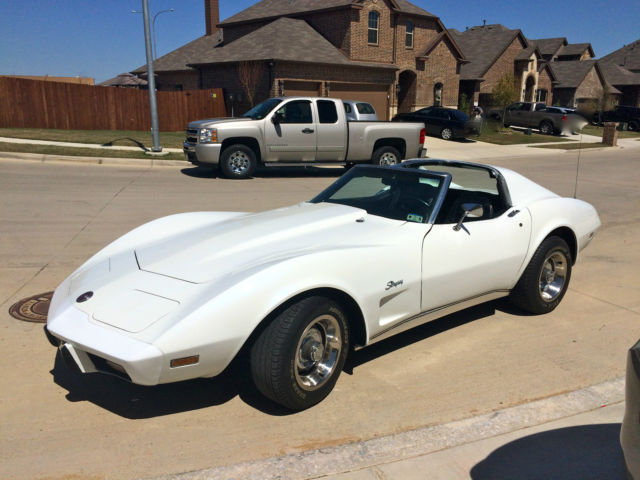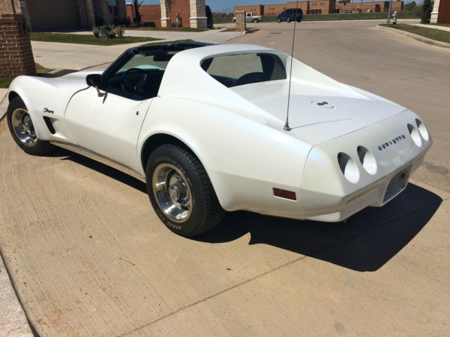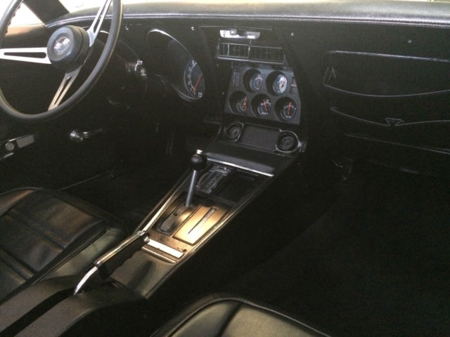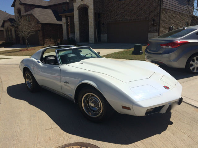 This is a garage kept partially restored 1974 Corvette. I came across this car in a trade about 6 years ago and for the most part have had it as a weekend ride. It runs great, I haven't had any mechanical problems whatsoever and the transmission shifts nicely. I recently had the interior replaced and restored with new; seat covers, door panels, trim, carpeting front and back, weather stripping, seat belts, and door hinges. Much of the rest I had restored including the dash and console, work was done professionally not in my garage or to the lowest bidder. In total I have over 8K in the interior, and it really looks great. It also has a nice set of rally rims with tires that have a good amount of tread left. As far as engine extras go I haven't had any work done but the previous owner must have because it has a cam, after market headers and exhaust, aluminum radiator, Edelbrock intake manifold, and I had belts replace and all fluids flushed and replaced. All the exterior lights work and the headlights go up and down perfectly. Interior lights work as well so its fine to go out cruising at night. The only electrical is issue to my knowledge is the turn signals don't work, I haven't driven it enough to worry about it so I never had it looked into as to why they don't work. This car was equipped with A/C at one point but it not longer has the compressor so no AC. The windshield has two cracks that aren't in the view of the driver, I think the windshield would be about $500 to replace but it wasn't a problem for me. For the most part this has just been a fun weekend or nice weather car but there was a point where I had to use it as a daily and I can say that there were no issues when driving it on the Atlanta interstates or the inner city streets. Since I have owned this car it has been well kept in a garage and maintained. Unfortunately Uncle Sam is sending me over seas for a while and I don't have the space to keep it. I am also biting the bullet and getting married so what space I have is being invaded! I know I am going to lose on this venture so my loss your gain, if you have any questions or want more pictures please let me know. Happy bidding