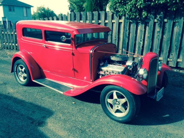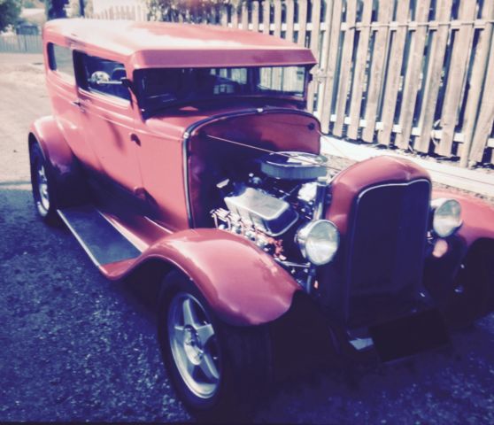 1931 Ford Model A Sedan chopped Top Henry Ford Steel body with Fiberglass fenders Hi Pro Chevrolet 454 big block with 750 Holley gives lots of power Block hugger headers with full Flowmaster Exhaust GM Turbo 400 Trans with Ford 9 inch rear 3.55 gears Coil over rear suspension Front is Mustang coil type with Disc brakes rack and pinion steering Top is solid all steel and very nicely done looks really smooth Front window tilts open 15 gallon gas tank Very nice custom interior looks great All glass and moldings look good Resto build done about 5 years ago Paint still looks great but a bit dated Painless wiring harnessĀ A very nicely done car that drives so well on the street with all the modern updates Smooth riding Classic Car still has Original 7 Digit California Title No hood 11 disc Cd Changer and nice sound System Car runs and drives greatĀ Call or text 541 990 6296 with questions Buyer to arrange for shipping or pick up