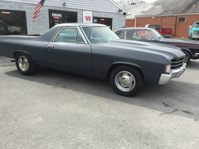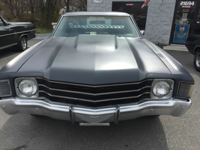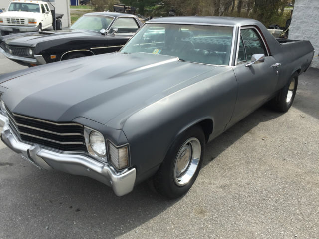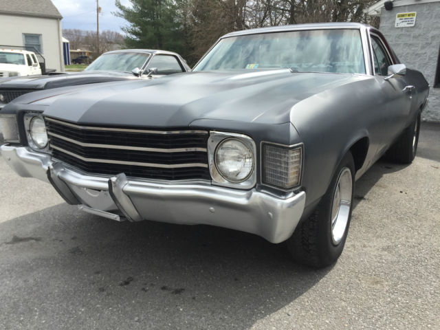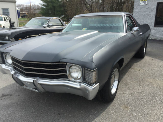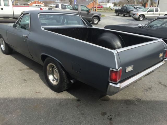 1972 Cheverlot El Camino 350, Automatic 1972 Chevy El Camino. This car has a 350 V8 motor and a 350 TH transmission. It has power steering and power brakes (disk in front). The numbers on the block show it to be a 300 HP out of a 1969 Impala. The engine starts easily every time and runs smooth with no smoking. The transmission shifts perfect. Steering and brakes are working as they should. It had a custom interior installed a few years back that looks good and is in good shape. Wipers, lights, turn signals and heat all work. No a/c. It has rally wheels with rings and center caps. Doors open and close as they should. All the glass is in good shape and the door glass rolls up and down properly. The dual exhaust sounds great on this car. The vehicle was originally red but as you can see is in a flat gray color now. The car runs and drives great. It does feel like one of the tires may be out of round or might have a broken band. You can drive this car as it is or take it to the next level. Own this car just in time for Cruise- In and Car Show season!!! Clear title in hand. Come on by for a Test Drive. If you have any questions please do not hesitate to call. Jon - 434-509-9893 Feel free to come by and look in person if you are close. We can help arrange delivery. This vehicle is Sold As-Is Where Is. Buyer responsible for pick-up of vehicle. All efforts are made to accurately describe this vehicle however buyer should satisfy their selves prior to bidding. Vehicle sold as "true miles unknown". Vehicle also for sale locally. Seller reserves the right to end the auction early and without warning. Buyer responsible for any state or local taxes, state titling fees and $150 processing fee. VADLR Your browser does not support JavaScript. To view this page, enable JavaScript if it is disabled or upgrade your browser.