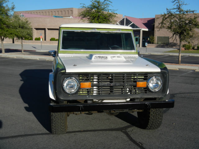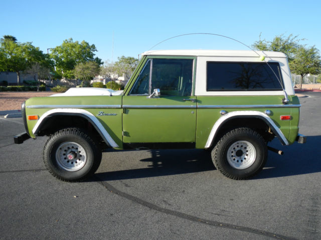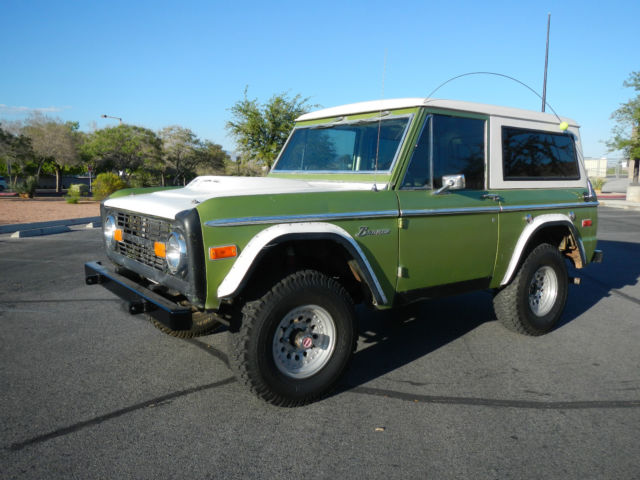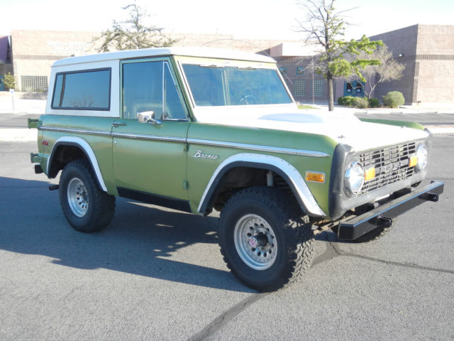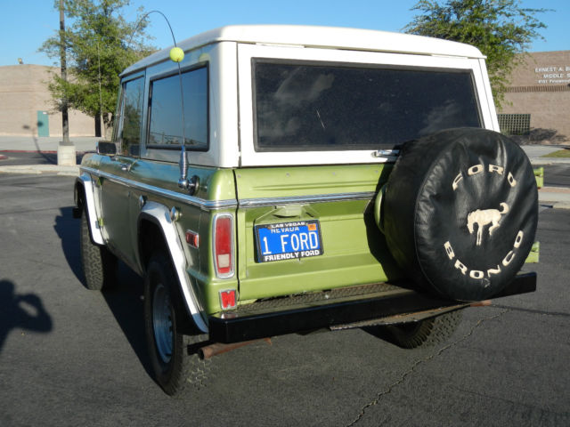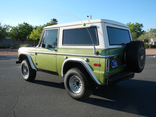 Itâs time to clean out the garage! I am selling my 1973 Early Bronco Ranger with a 302 ci motor and automatic transmission. This Bronco is very original with some very cool 70s upgrades. This Bronco was originally sold in Phoenix AZ and then was up fitted by K Bar S Bronco specialties in Las Vegas. The Bronco has spent its life in the desert and is in good unrestored condition. The Body appears to be completely rust free, the paint looks to be a very old exterior repaint and is worn and faded, the interior has had new carpet installed and the seats have been reupholstered. The 302 engine was rebuilt at one point and starts right up and drives well. Some of the Trucks upgrades include K BAR S fiberglass hood, Fender flares, push button start, poly-urethane bushings, Whip C/b Antenna, power steering, aluminum wheels with BF Goodrich tires, Steel Custom Bumpers, Aluminum radiator, serpentine engine belt kit, spare tire carrier, and a very cool vintage Jensen radio! This Bronco is an original Ranger package truck and is still equipped with the 3.50 limited slip axles and dual fuel tanks. I had removed the rear fuel tank and replaced it with a new larger 25 gallon tank. I have not cleaned or used the aux tank in a very long time so I would recommend cleaning and checking it before you use it. Over all this Truck is a very good unrestored early Bronco that has lived in a dry climate, is not a rust bucket, spent its fair share of time playing in the desert and has some fun K Bar S history behind it too! Please feel free to ask any questions and I will answer them as soon as I can, good Luck and Good Bidding!