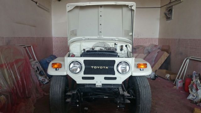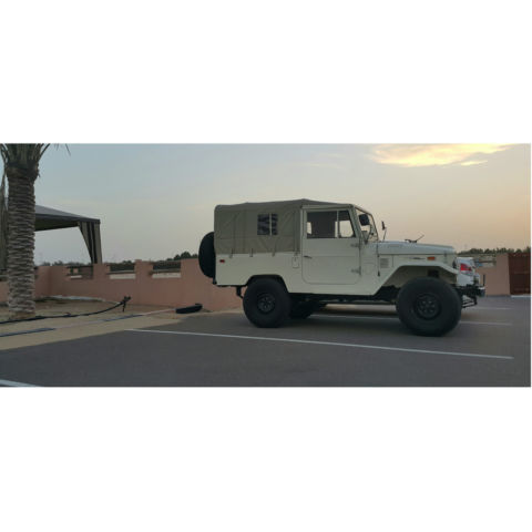 TOYOTA FJ43 1975 Land Cruiser Cream white 3 speed manual 2F engine soft top The car is full restored to original specifications except: - Added Power Steering - AC Unit - Dashboard - Seal to the soft top All items are TOYOTA OEM except for one emblem The 2F engine is fully rebuilt the block is machined for the first time to .5 size still one more to go The pistons piston seals bearings gasket oil and water pumps are replaced with all external accessories plugs and wires and a brand new original carburetor All the transmit ion switches and flywheel and clutch plate are replaced Break booster, lines pads wheel drums are replaced The whole body was put to parts and painted and then placed according to the book The chassis is sand blasted and is coated and protected all the joints between the chassis and parts of the body are replaced The whole steering system is overhauled column steering box and stabilizers are replaced or rebuild Interior decoration is brand new the car is fitted with heat protection All the interior and exterior emblems are replaced 5 brand new tiers Brand new TOYOTA battery Any other questions are most welcomed