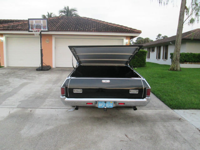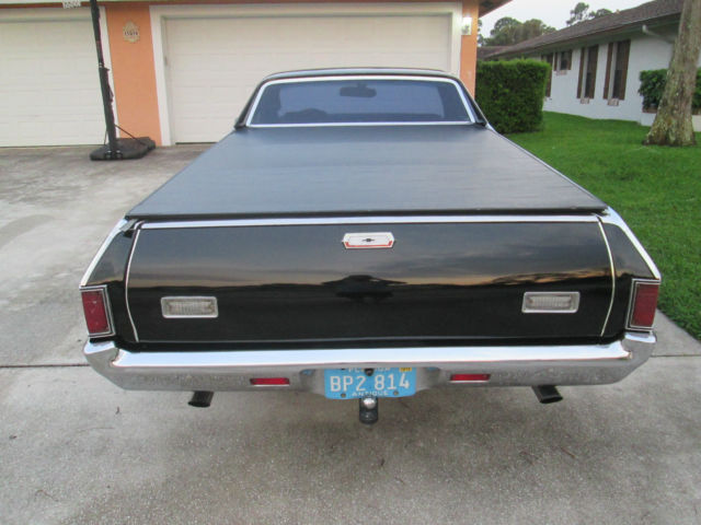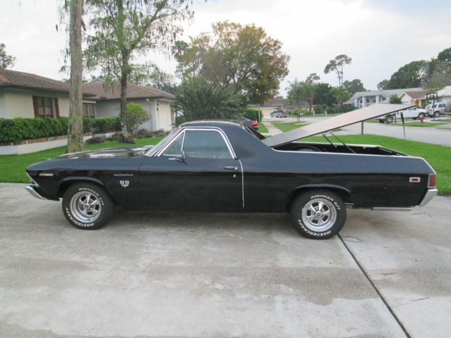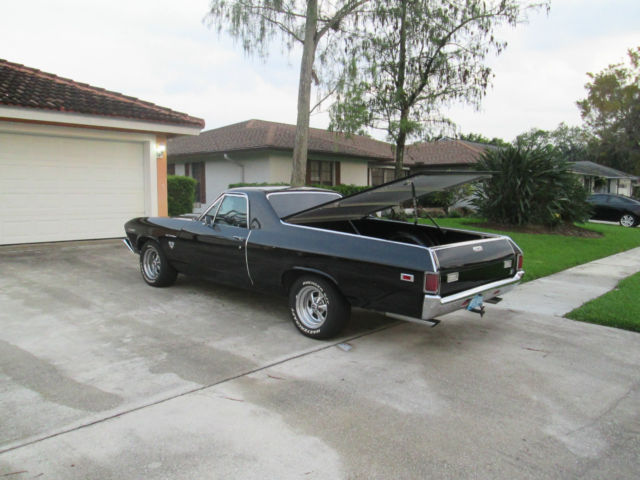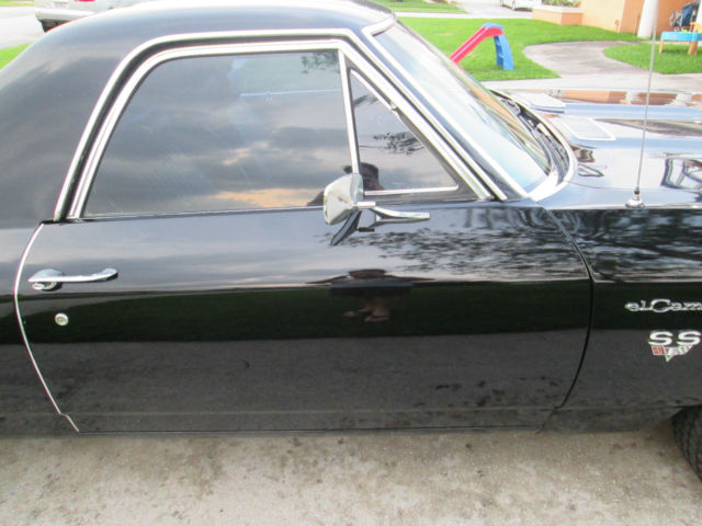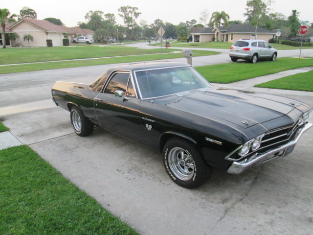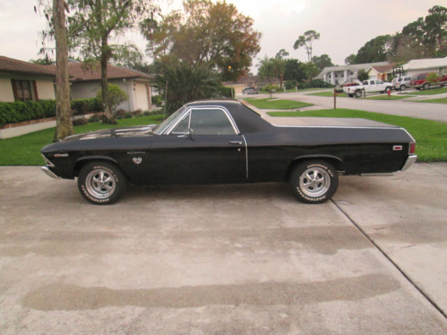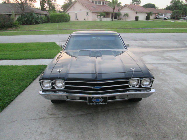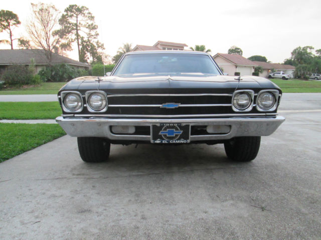 Up for sale is a beautiful 1969 El Camino. This El Camino comes equipped with a 350 V8 Engine, and the SS Badging Package. Gorgeous two-tone paint and fully restored interior. The front drum brakes have been upgraded to power disc. There are some light scratches on the rear and passenger fenders. I tried to take a picture but they wouldn't show up but overall the paint is still excellent. Car runs perfectly and is currently driven almost daily. There is no rust anywhere on the car. There are three things on the car that do not work. The first is the window washers, the wipers work fine but the washer does not activate. The second is the horn. The horn is present but it does not work. There is no heater in the car, the core has been removed. Other features include: TH350 automatic transmission New under dash A/C - R134A New steering wheel New carpet New door panels New dash and pad New headliner New sun visors Infinity REF-9602ix Speakers with Bazooka BTA6100subwoofer and Crunch Amp 3.5 MM stereo input for iPhone or Android Tonneau Cover Black Leather Interior Power Steering Power Brakes Bucket Seats Malibu Trim SS Trim Aftermarket Chrome Valve Covers Center Console Hood Pins AWC Super Spoke Chrome Wheels Mastercraft Avenger GT Tires 12 Bolt Rear End Wrapped Headers Chrome Alternator K&N Filter Accel Distributor Towing Hitch Tinted Windows No heater Any questions please contact Brett at 561-234-0729 ore-mail bbuswell@yahoo.com Thanks