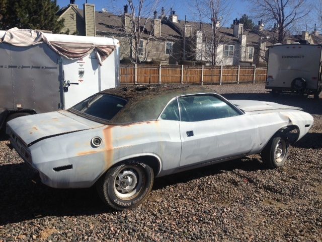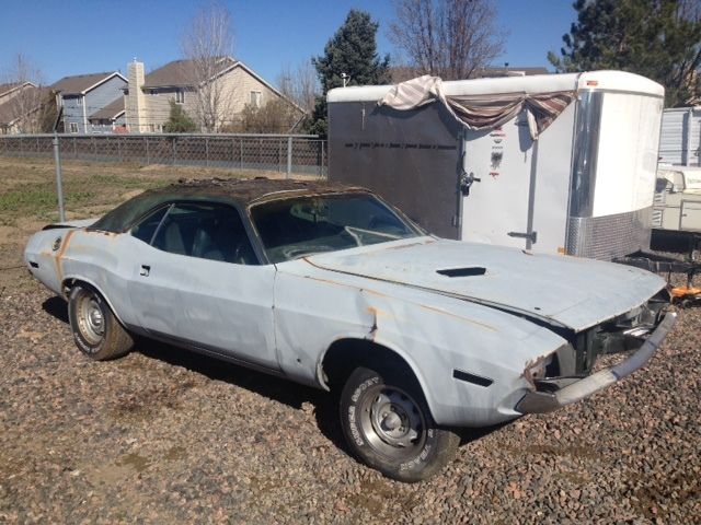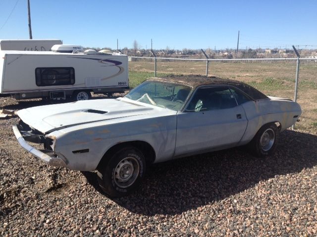 1970 Dodge Challenger RT - Super Tack Pack I'm selling (1) 1970 Dodge Challenger RT Super Track Pack car (RARE!!) What does a Super Track Pack include you ask...? Super Track Pack: -Available on 440/426 cars only - Only available with 4 Speed Manual, not automatics - Dana 60 (9.75") Sure Grip w/ 4.10 Gears - Front Power Disc Brakes - Sway Bar - Max Cool Radiator - 7 Blade Cooling Fan - Dual Point Distributor What did this car look like when new? This was factory Dark Metallic Green, with a black bumble bee stripe on tail, black hood treatment, hood pins, black vinyl top, black leather interior, 8-track stereo with 3 speaker dash, tinted windows, wheel lip moldings, etc, etc, That's one great looking car!!!! This car retains all of it's original body panels with exception to the truck floor, which was professionally replaced. The roof needs a new skin due to the vinyl top, other than that the car is RUST FREE!!! Please check out the pics of the hood hing bracket, a place where ALL Mopars rust - no rust there either. The car has all original components and original numbers with exception to the transmission. The transmission is out of a '69 Dodge. The car has been in storage since 1988 and recently moved outside due to running out of space. One thing very unique to this car is that is was bored 0.20 over from the factory. Please see the "A" stamped on the engine badge of the block, which was factory imprinted on the block from the factory. I've seen a lot of Mopars at car shows but never seen or heard of this option...very Rare! The car was damaged in 1988 when being unloaded, buckling the front of the fenders. I do have (2) original fenders that have no dents/damage that I'll be throwing in with the car. I anticipate that if you're interested you'll contact me with additional questions/comments. Buyer responsible for all shipping/freight. I'm located in Denver, CO if you'd like to come see the car in person. Deposit of $500 due via PayPal within 48 hours of purchasing the vehicle. I'm asking $23,500 but am open to negotiations/haggling on price, but I am selling this car locally as well. NO LOW BALLERS!!! If you email me with an offer of $6,250 you won't get a reply. NO TRADES PLEASE!!! I'm trying to get rid of a car not gain another. These Super Track Pack cars sell for between $70-$80k when finished. This is your chance to have a h*ll of a car to finish restoring.
