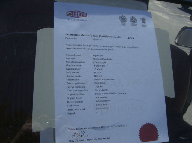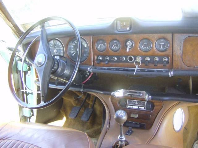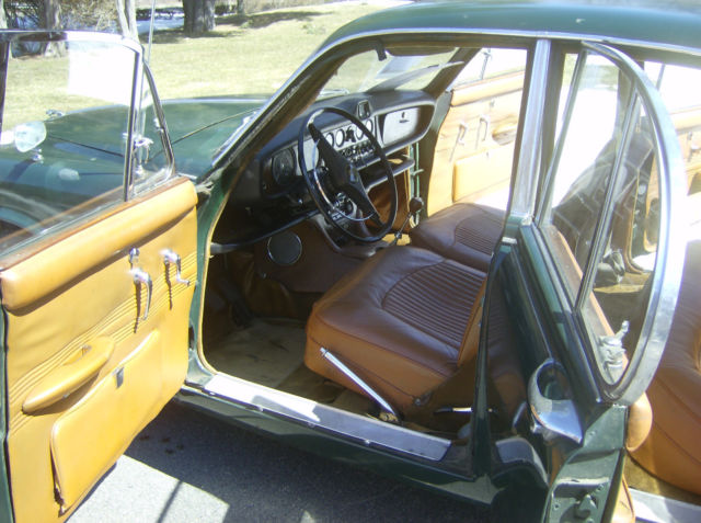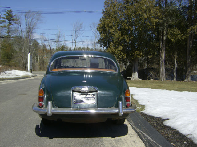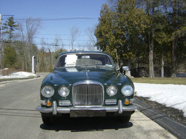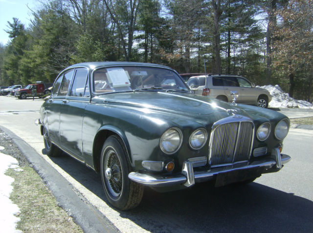 Hilltop Auto's stock # 156, a 1966 420 Sedan fitted with the 4 speed manual gearbox was first dispatched to a Mr. Herr F Benz in Germany and as listed in the Jaguar Heritage Certificate, the car came through in a Dark Green paint with a Light Tan interior. The 420 Saloon or Sedan is very under rated vehicle. The 420 has some upgraded features that can not be found on the small Jaguar sedans. For instance the independent rear suspension, the V-12 E-type braking system, the 4.2 E-type engine with 2 S.U. carburetors, and the Varimatic power steering that does not leak like some others. The 420 was only made a total 2 years. Only 88 manual gearbox 420's were sent to the United States. Most of the 420 sedans shipped to the United States were fitted with an automatic transmission. The car starts right up and runs and drives, but the brakes will some attention as the car has been sitting for a while. The carburetors were recently rebuilt and the slave cylinder has been gone through. The interior in the car is in very nice condition. Here is your opportunity to to drive around in style in a classic Jaguar sedan with patina this summer. We ship worldwide and can assist a buyer with locating a shipper that suits their needs. Transport to the major container port located in Elizabeth, New Jersey is $400.00. If you would like to speak to someone on this car please call Dan at 001 (781) 630-0185.